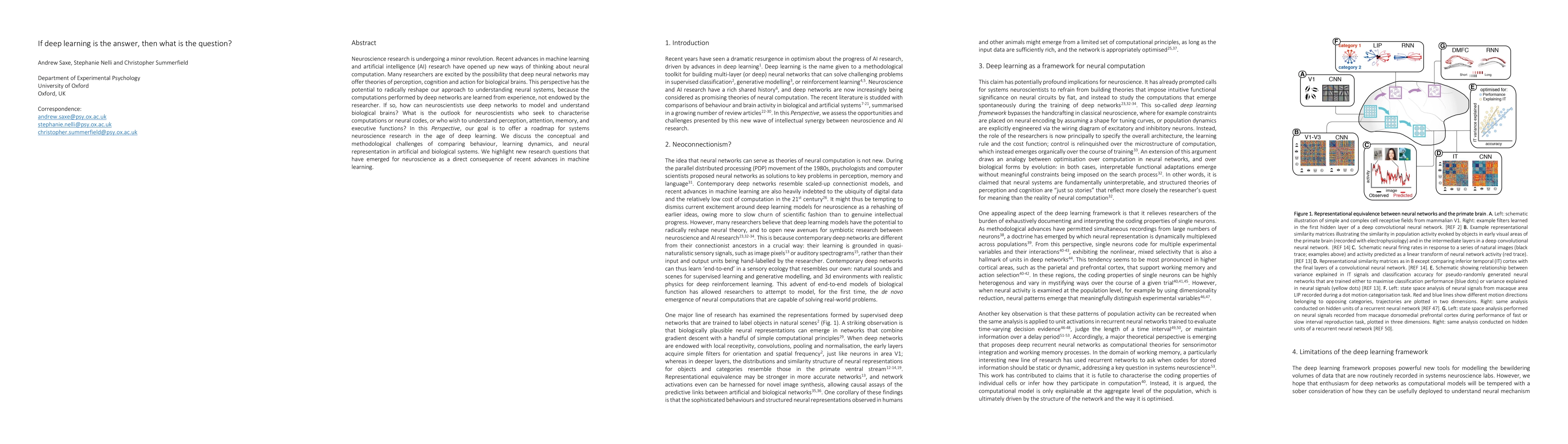 Neuroscience research is undergoing a minor revolution. Recent advances in machine learning and artificial intelligence (AI) research have opened up new ways of thinking about neural computation. Many researchers are excited by the possibility that deep neural networks may offer theories of perception, cognition and action for biological brains. This perspective has the potential to radically reshape our approach to understanding neural systems, because the computations performed by deep networks are learned from experience, not endowed by the researcher. If so, how can neuroscientists use deep networks to model and understand biological brains? What is the outlook for neuroscientists who seek to characterise computations or neural codes, or who wish to understand perception, attention, memory, and executive functions? In this Perspective, our goal is to offer a roadmap for systems neuroscience research in the age of deep learning. We discuss the conceptual and methodological challenges of comparing behaviour, learning dynamics, and neural representation in artificial and biological systems. We highlight new research questions that have emerged for neuroscience as a direct consequence of recent advances in machine learning.