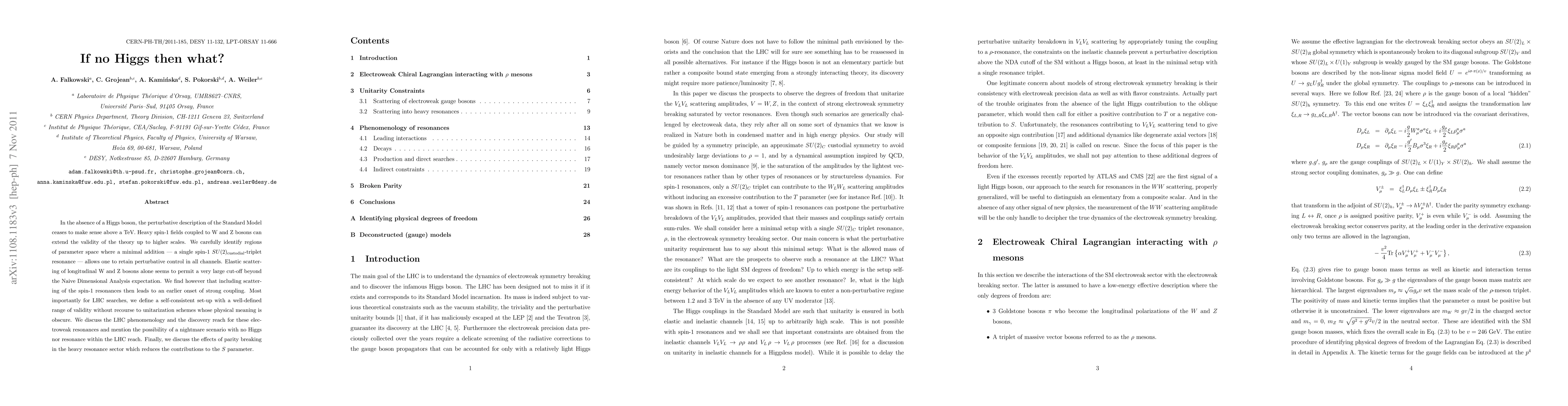 This paper explores the implications of a world without a Higgs boson, proposing that heavy spin-1 fields can extend the Standard Model's validity to higher energy scales. It identifies a minimal custodial SU(2) triplet resonance that maintains perturbative control, discusses LHC phenomenology, and warns of a potential "nightmare scenario" where neither Higgs nor resonances are within LHC reach.