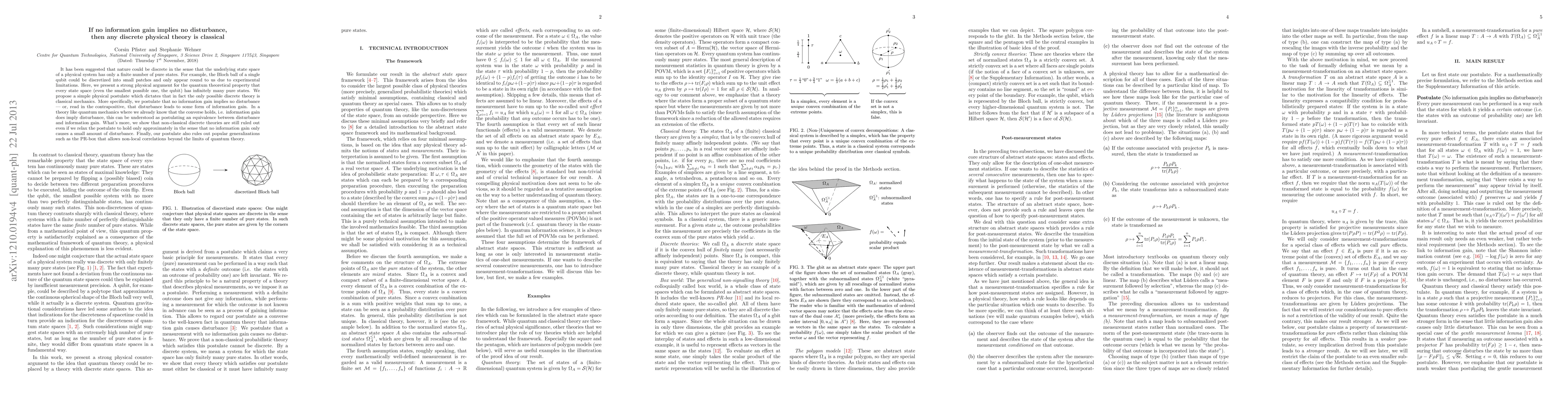 This paper argues that a fundamental physical postulate—no information gain implies no disturbance—implies that any discrete physical theory must be classical. It demonstrates that this principle rules out non-classical discrete theories, including those allowing non-local correlations beyond quantum mechanics.