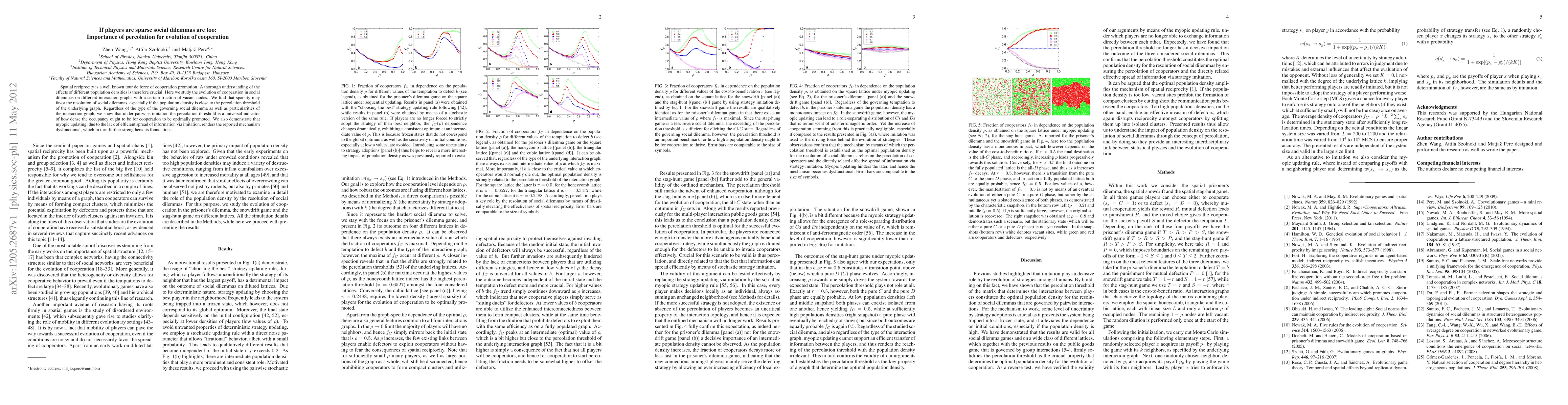 Spatial reciprocity is a well known tour de force of cooperation promotion. A thorough understanding of the effects of different population densities is therefore crucial. Here we study the evolution of cooperation in social dilemmas on different interaction graphs with a certain fraction of vacant nodes. We find that sparsity may favor the resolution of social dilemmas, especially if the population density is close to the percolation threshold of the underlying graph. Regardless of the type of the governing social dilemma as well as particularities of the interaction graph, we show that under pairwise imitation the percolation threshold is a universal indicator of how dense the occupancy ought to be for cooperation to be optimally promoted. We also demonstrate that myopic updating, due to the lack of efficient spread of information via imitation, renders the reported mechanism dysfunctional, which in turn further strengthens its foundations.