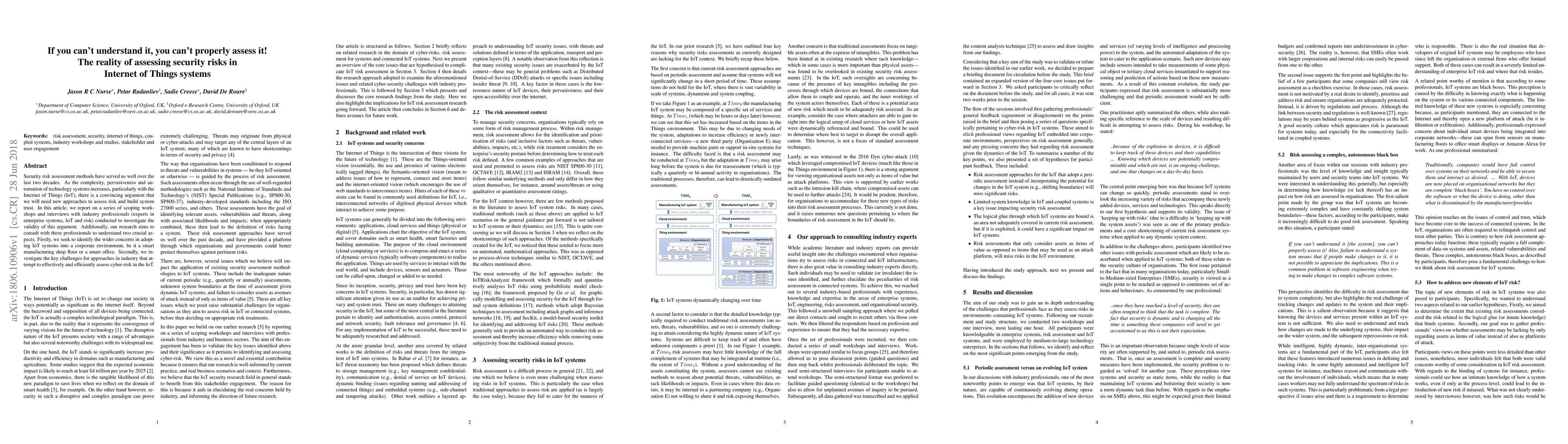 Assessing security risks in IoT systems is challenging due to their complexity and automation, requiring new approaches to build system trust. Industry professionals identified key concerns with adopting IoT systems and challenges with assessing cyber-risk, highlighting the need for innovative risk assessment methods.