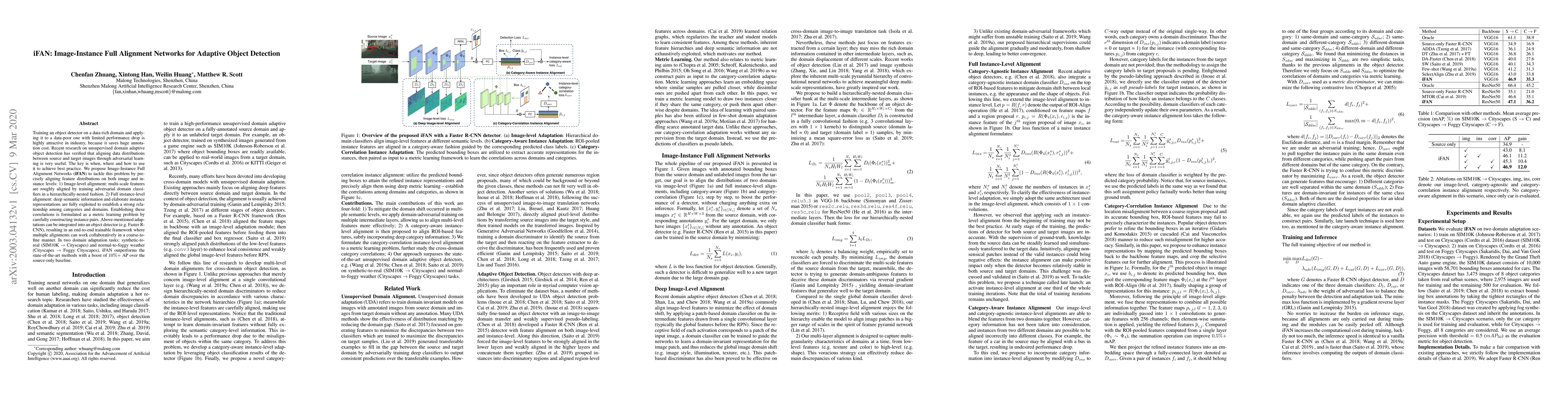 Training an object detector on a data-rich domain and applying it to a data-poor one with limited performance drop is highly attractive in industry, because it saves huge annotation cost. Recent research on unsupervised domain adaptive object detection has verified that aligning data distributions between source and target images through adversarial learning is very useful. The key is when, where and how to use it to achieve best practice. We propose Image-Instance Full Alignment Networks (iFAN) to tackle this problem by precisely aligning feature distributions on both image and instance levels: 1) Image-level alignment: multi-scale features are roughly aligned by training adversarial domain classifiers in a hierarchically-nested fashion. 2) Full instance-level alignment: deep semantic information and elaborate instance representations are fully exploited to establish a strong relationship among categories and domains. Establishing these correlations is formulated as a metric learning problem by carefully constructing instance pairs. Above-mentioned adaptations can be integrated into an object detector (e.g. Faster RCNN), resulting in an end-to-end trainable framework where multiple alignments can work collaboratively in a coarse-tofine manner. In two domain adaptation tasks: synthetic-to-real (SIM10K->Cityscapes) and normal-to-foggy weather (Cityscapes->Foggy Cityscapes), iFAN outperforms the state-of-the-art methods with a boost of 10%+ AP over the source-only baseline.