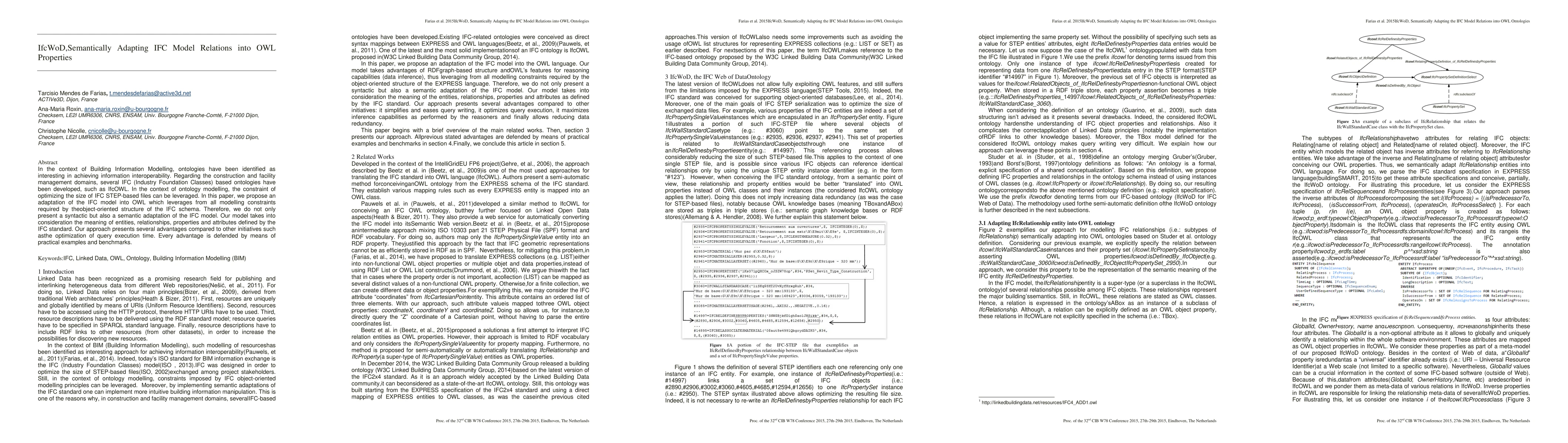 In the context of Building Information Modelling, ontologies have been identified as interesting in achieving information interoperability. Regarding the construction and facility management domains, several IFC (Industry Foundation Classes) based ontologies have been developed, such as IfcOWL. In the context of ontology modelling, the constraint of optimizing the size of IFC STEP-based files can be leveraged. In this paper, we propose an adaptation of the IFC model into OWL which leverages from all modelling constraints required by the object-oriented structure of IFC schema. Therefore, we do not only present a syntactic but also a semantic adaptation of the IFC model. Our model takes into consideration the meaning of entities, relationships, properties and attributes defined by the IFC standard. Our approach presents several advantages compared to other initiatives such as the optimization of query execution time. Every advantage is defended by means of practical examples and benchmarks.