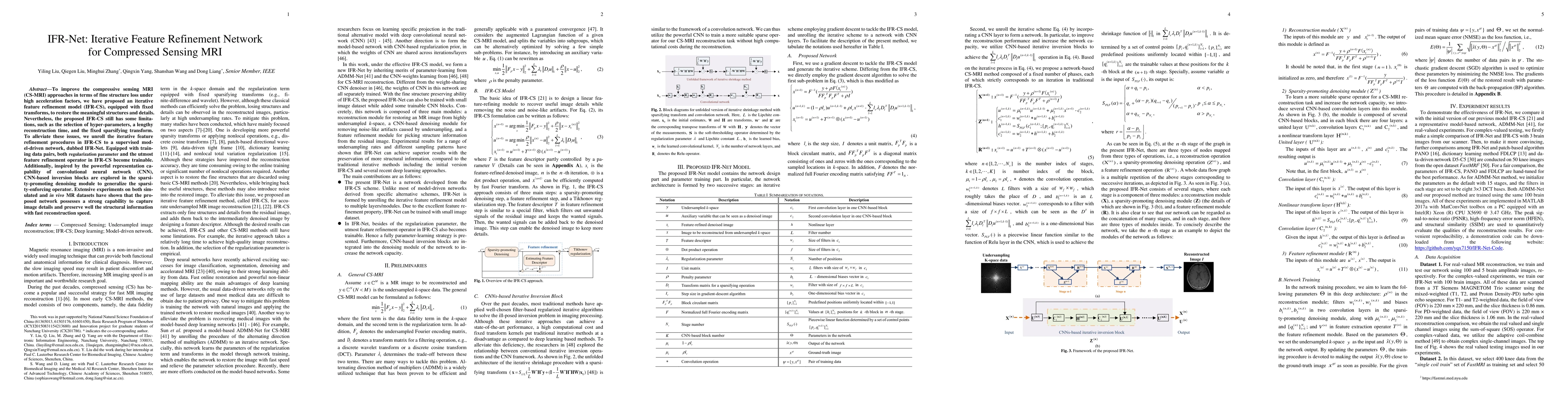 A new network called IFR-Net is proposed to improve compressed sensing MRI by refining features iteratively and learning from training data. It outperforms existing methods with fast reconstruction speed while preserving structural information and image details.
