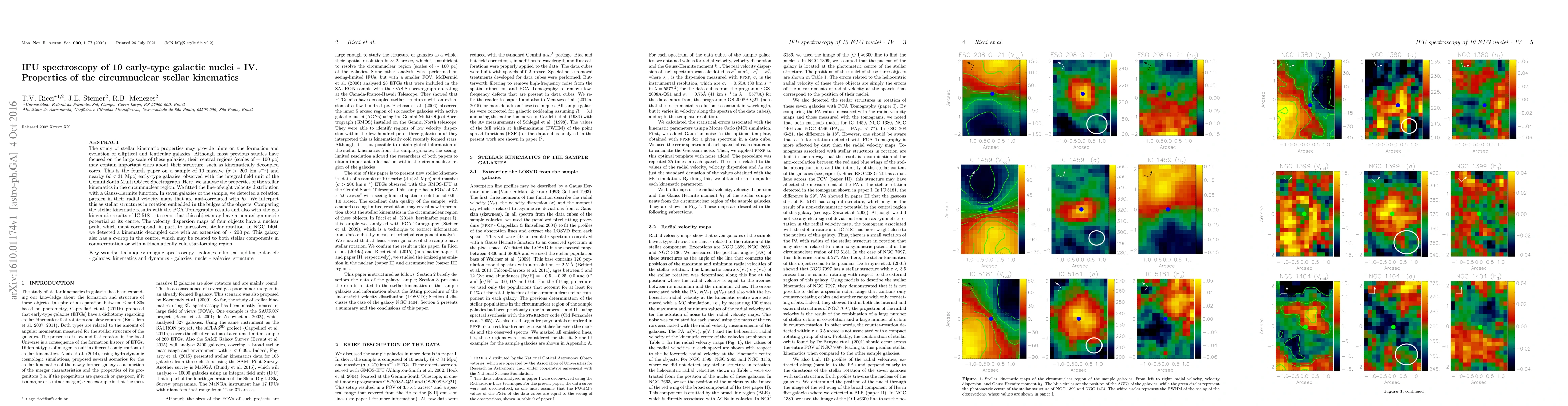 Researchers used integral field unit spectroscopy to study stellar kinematics in 10 early-type galaxies, finding rotation patterns in some cases and a kinematically decoupled core in one galaxy, which may be related to counter-rotating stars or an unformed star-forming region.