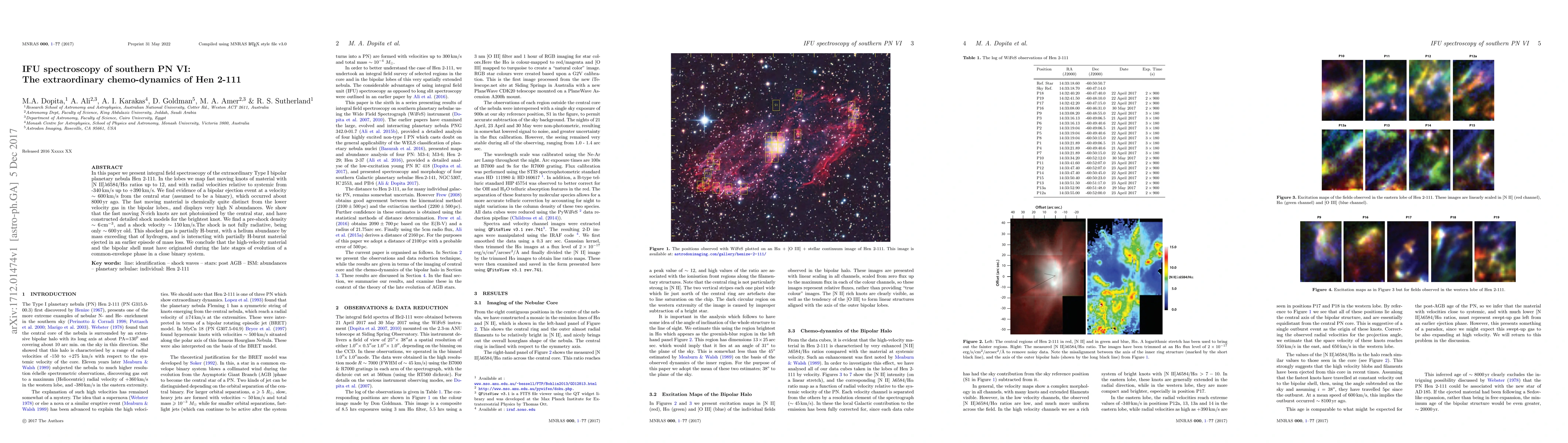In this paper we present integral field spectroscopy of the extraordinary Type I bipolar planetary nebula Hen 2-111. In the lobes we map fast moving knots of material with [N II]$\lambda 6584$/H$\alpha$ ratios up to 12, and with radial velocities relative to systemic from -340 km/s up to +390 km/s. We find evidence of a bipolar ejection event at a velocity $\sim 600$ km/s from the central star (assumed to be a binary), which occurred about 8000yr ago. The fast moving material is chemically quite distinct from the lower velocity gas in the bipolar lobes., and displays very high N abundances. We show that the fast moving N-rich knots are not photoionised by the central star, and have constructed detailed shock models for the brightest knot. We find a pre-shock density $\sim 6$cm$^{-3}$, and a shock velocity $\sim150$ km/s. The shock is not fully radiative, being only $\sim 600$yr old. This shocked gas is partially H-burnt, with a helium abundance by mass exceeding that of hydrogen, and is interacting with partially H-burnt material ejected in an earlier episode of mass loss. We conclude that the high-velocity material and the bipolar shell must have originated during the late stages of evolution of a common-envelope phase in a close binary system.