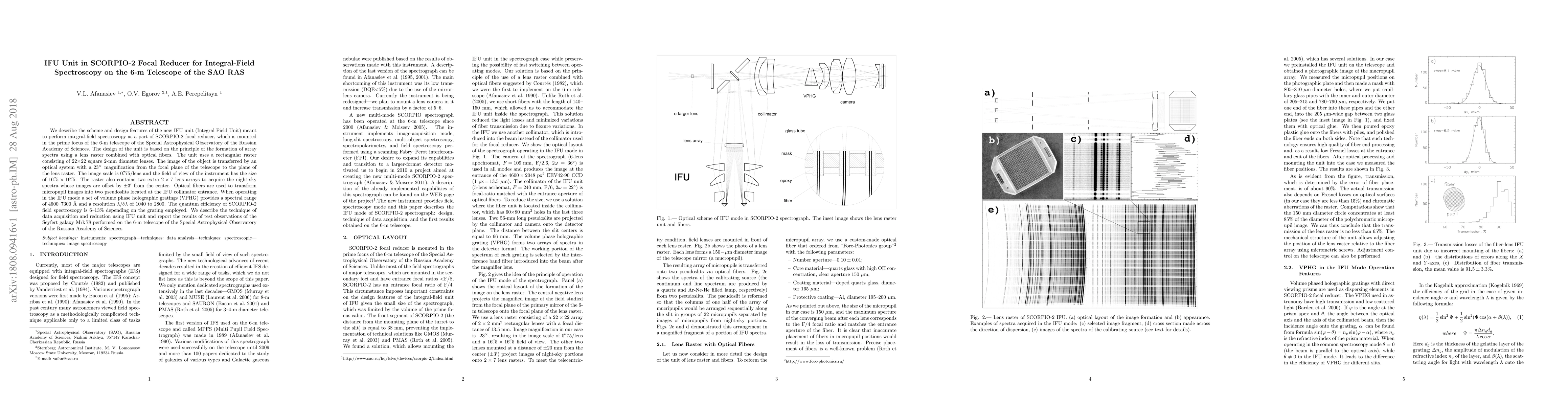 We describe the scheme and design features of the new IFU unit (Integral Field Unit) meant to perform integral-field spectroscopy as a part of SCORPIO-2 focal reducer, which is mounted in the prime focus of the 6-m telescope of the Special Astrophysical Observatory of the Russian Academy of Sciences. The design of the unit is based on the principle of the formation of array spectra using a lens raster combined with optical fibers. The unit uses a rectangular raster consisting of 22x22 square 2-mm diameter lenses. The image of the object is transferred by an optical system with a 23x magnification from the focal plane of the telescope to the plane of the lens raster. The image scale is 0.75"/lens and the field of view of the instrument has the size of 16.5"x16.5". The raster also contains two extra 2x7 lens arrays to acquire the night-sky spectra whose images are offset by $\pm$3' from the center. Optical fibers are used to transform micropupil images into two pseudoslits located at the IFU collimator entrance. When operating in the IFU mode a set of volume phase holographic gratings (VPHG) provides a spectral range of 4600-7300 \AA\ and a resolution $\lambda/\delta\lambda$ of 1040 to 2800. The quantum efficiency of SCORPIO-2 field spectroscopy is 6-13% depending on the grating employed. We describe the technique of data acquisition and reduction using IFU unit and report the results of test observations of the Seyfert galaxy Mrk 78 performed on the 6-m telescope of the Special Astrophysical Observatory of the Russian Academy of Sciences.