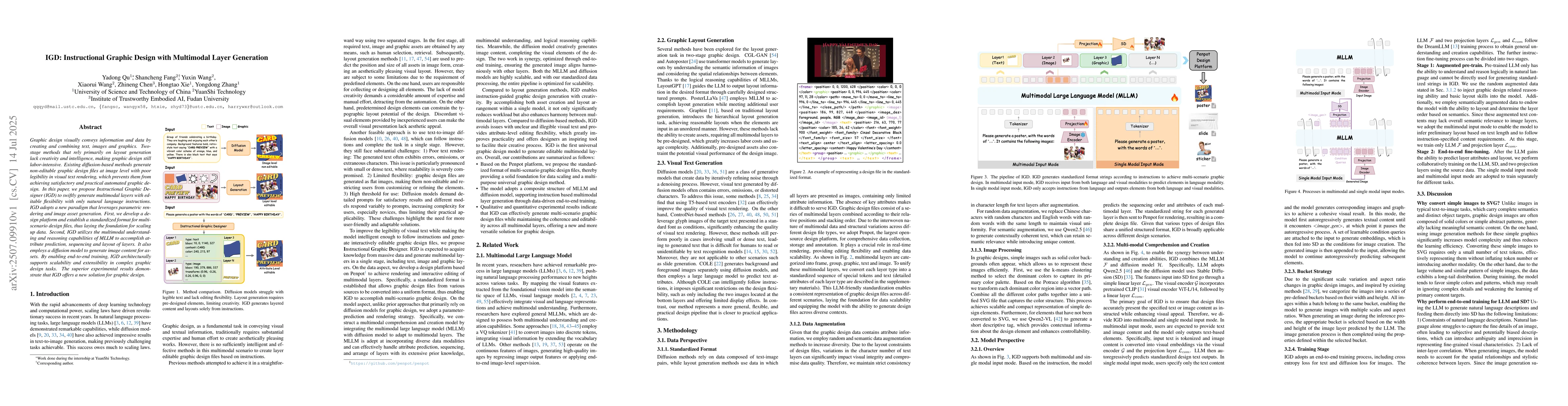 Graphic design visually conveys information and data by creating and combining text, images and graphics. Two-stage methods that rely primarily on layout generation lack creativity and intelligence, making graphic design still labor-intensive. Existing diffusion-based methods generate non-editable graphic design files at image level with poor legibility in visual text rendering, which prevents them from achieving satisfactory and practical automated graphic design. In this paper, we propose Instructional Graphic Designer (IGD) to swiftly generate multimodal layers with editable flexibility with only natural language instructions. IGD adopts a new paradigm that leverages parametric rendering and image asset generation. First, we develop a design platform and establish a standardized format for multi-scenario design files, thus laying the foundation for scaling up data. Second, IGD utilizes the multimodal understanding and reasoning capabilities of MLLM to accomplish attribute prediction, sequencing and layout of layers. It also employs a diffusion model to generate image content for assets. By enabling end-to-end training, IGD architecturally supports scalability and extensibility in complex graphic design tasks. The superior experimental results demonstrate that IGD offers a new solution for graphic design.