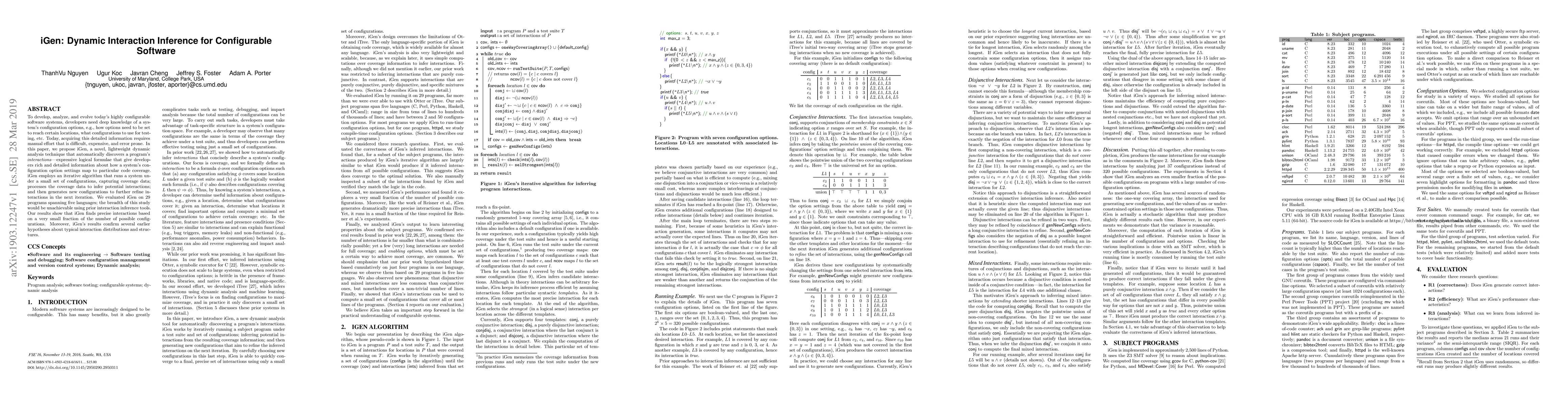 Researchers developed iGen, a dynamic analysis technique that automatically discovers interactions in software systems, providing detailed information about how configuration option settings map to code coverage. The study found precise interactions based on a small fraction of possible configurations.