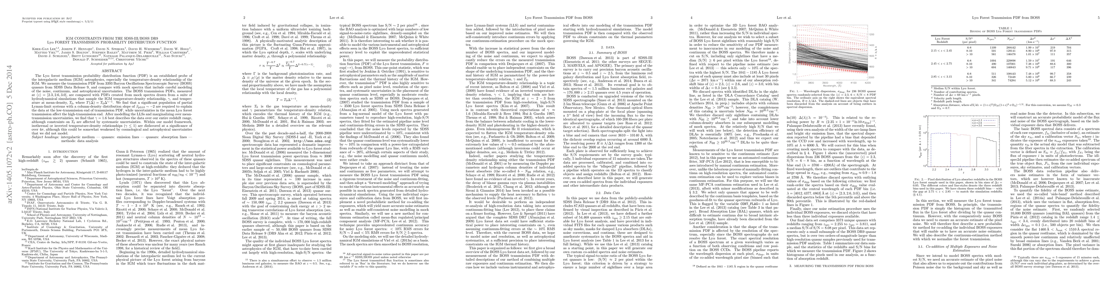 This study uses the Ly$\alpha$ forest transmission probability distribution function from BOSS quasars to probe the IGM's temperature-density relationship. The analysis finds that $\gamma=1.6$ best describes the data, while disfavoring isothermal or inverted relationships, though systematic uncertainties may affect these conclusions.