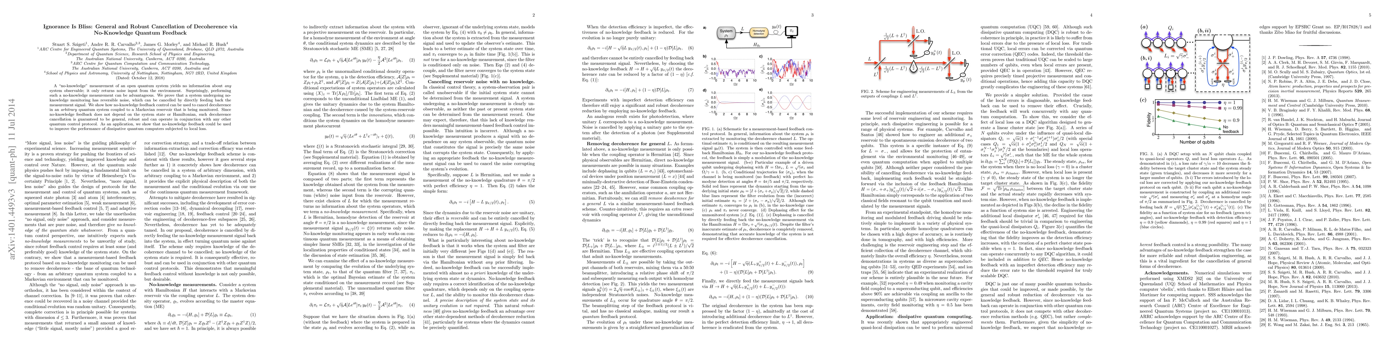 A "no-knowledge" measurement of an open quantum system yields no information about any system observable; it only returns noise input from the environment. Surprisingly, performing such a no-knowledge measurement can be advantageous. We prove that a system undergoing no-knowledge monitoring has reversible noise, which can be cancelled by directly feeding back the measurement signal. We show how no-knowledge feedback control can be used to cancel decoherence in an arbitrary quantum system coupled to a Markovian reservoir that is being monitored. Since no-knowledge feedback does not depend on the system state or Hamiltonian, such decoherence cancellation is guaranteed to be general, robust and can operate in conjunction with any other quantum control protocol. As an application, we show that no-knowledge feedback could be used to improve the performance of dissipative quantum computers subjected to local loss.