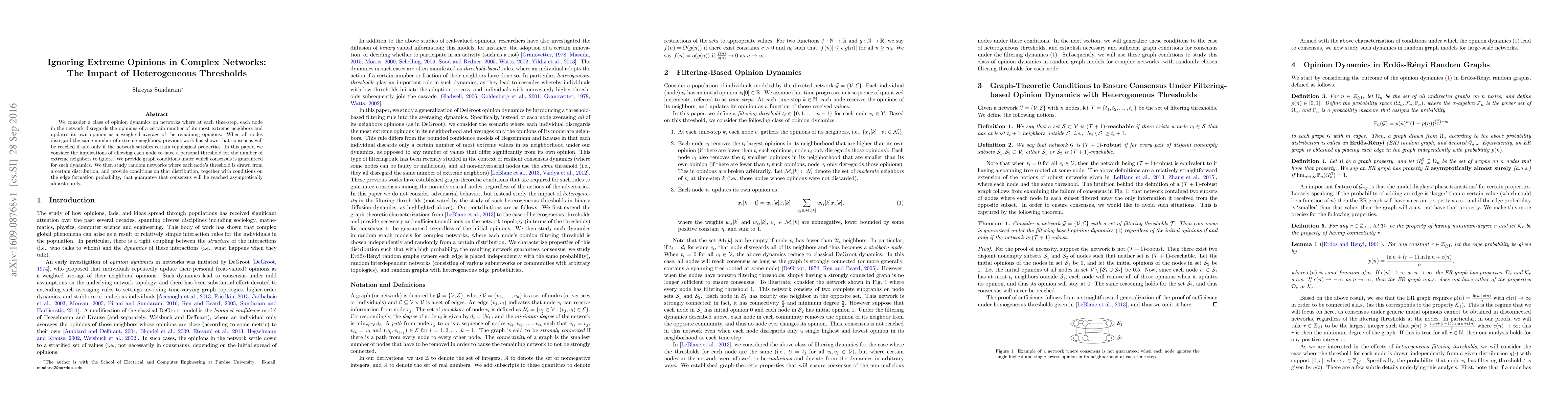 Researchers studied how ignoring extreme opinions in complex networks affects consensus, finding conditions under which nodes can guarantee agreement when given personal thresholds for ignoring their most extreme neighbors.