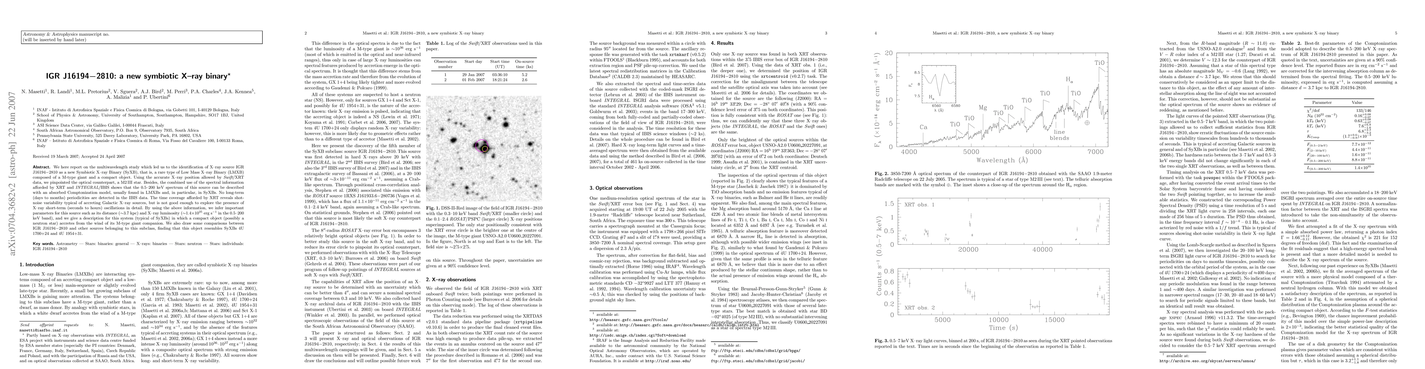 A new symbiotic X-ray binary, IGR J16194-2810, has been identified through a multiwavelength study, featuring a M-type giant and a compact object in a rare Low Mass X-ray Binary configuration.