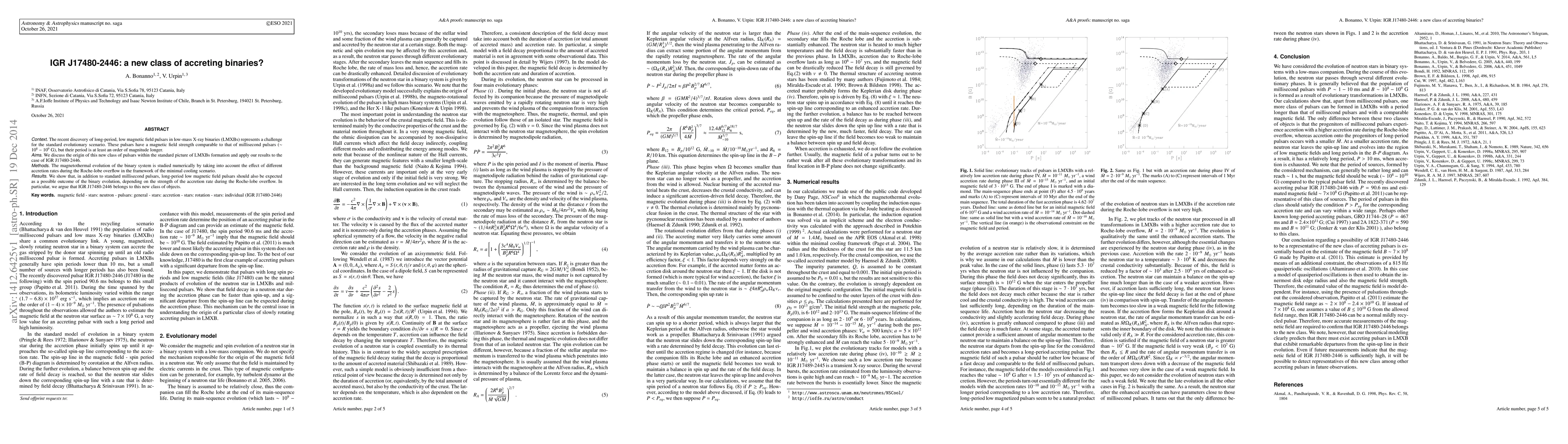The recent discovery of long-period, low magnetic field pulsars in low-mass X-ray binaries (LMXBs) represents a challenge for the standard evolutionary scenario. These pulsars have a magnetic field strength comparable to that of millisecond pulsars ($\sim 10^8 - 10^9$ G), but their period is at least an order of magnitude longer. We discuss the origin of this new class of pulsars within the standard picture of LMXBs formation and apply our results to the case of IGR J17480-2446. The magnetothermal evolution of the binary system is studied numerically by taking into account the effect of different accretion rates during the Roche-lobe overflow in the framework of the minimal cooling scenario. We show that, in addition to standard millisecond pulsars, long-period low magnetic field pulsars should also be expected as a possible outcome of the binary evolution, depending on the strength of the accretion rate during the Roche-lobe overflow. In particular, we argue that IGR J17480-2446 belongs to this new class of objects.