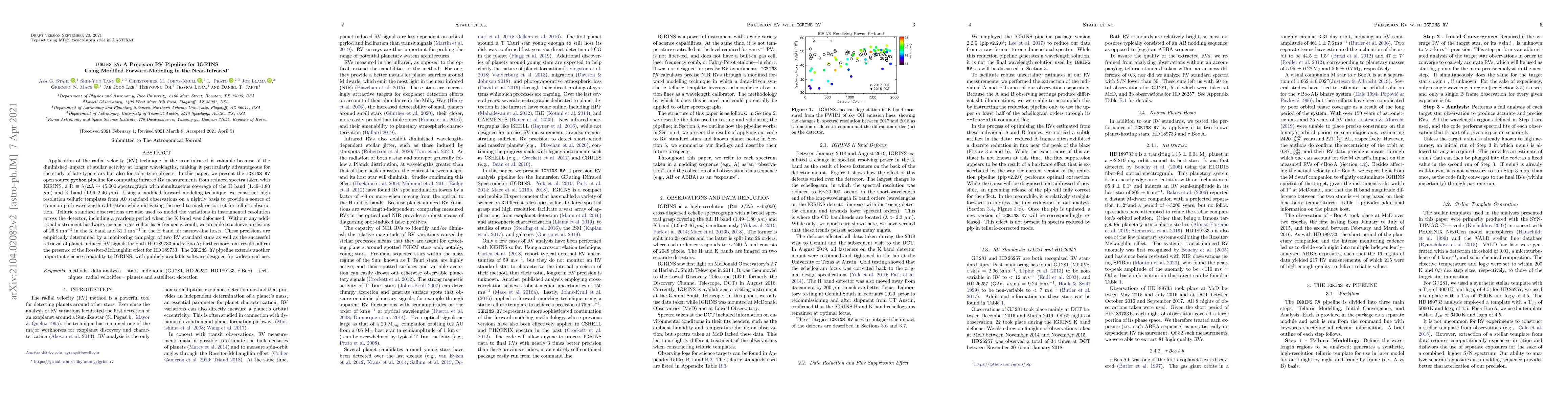 The research presents an open-source Python pipeline, IGRINS RV, for computing radial velocity (RV) measurements from reduced IGRINS spectra. It employs a modified forward modeling technique to handle the high-resolution, cross-dispersed echelle spectra from the IGRINS spectrograph, which covers the H and K bands. The pipeline constructs high-resolution telluric templates nightly from A0 standard observations to serve as a common-path wavelength calibrator and mitigate telluric absorption issues.