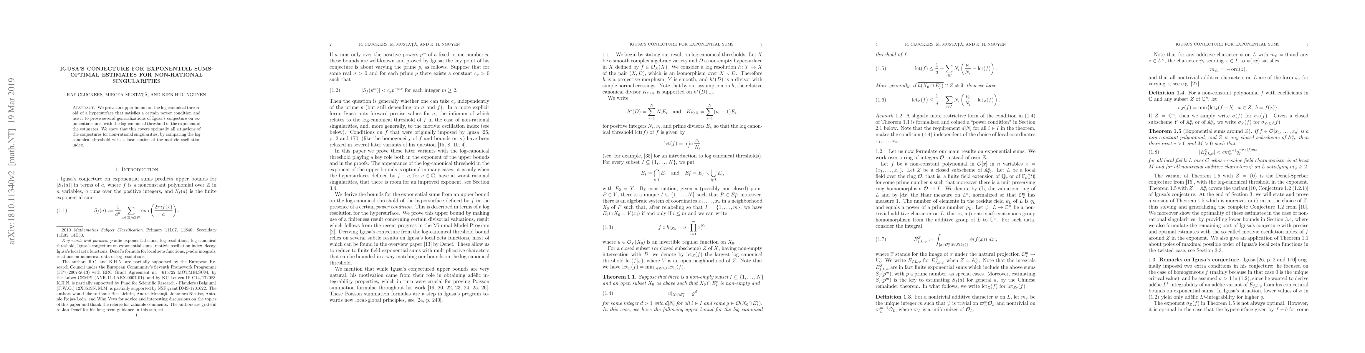 Summary: This paper proves an upper bound on the log canonical threshold for a specific class of hypersurfaces and uses this result to generalize Igusa's conjecture on exponential sums, demonstrating optimal estimates for non-rational singularities by relating the log canonical threshold to the motivic oscillation index.