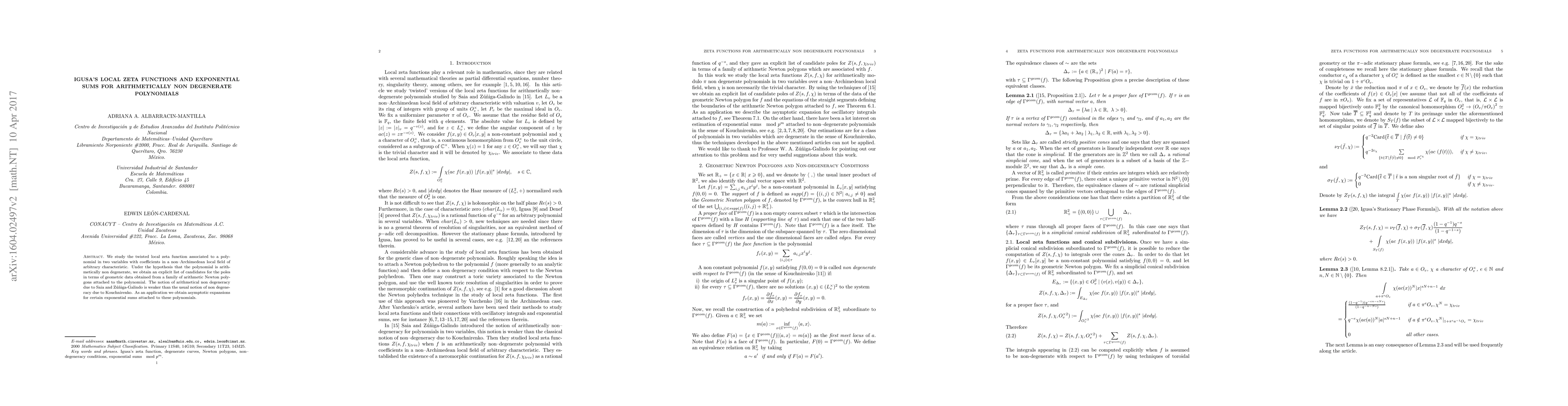 This paper investigates Igusa's local zeta functions for arithmetically non-degenerate polynomials over non-Archimedean local fields, deriving explicit pole candidates linked to geometric data from arithmetic Newton polygons. It also provides asymptotic expansions for associated exponential sums.