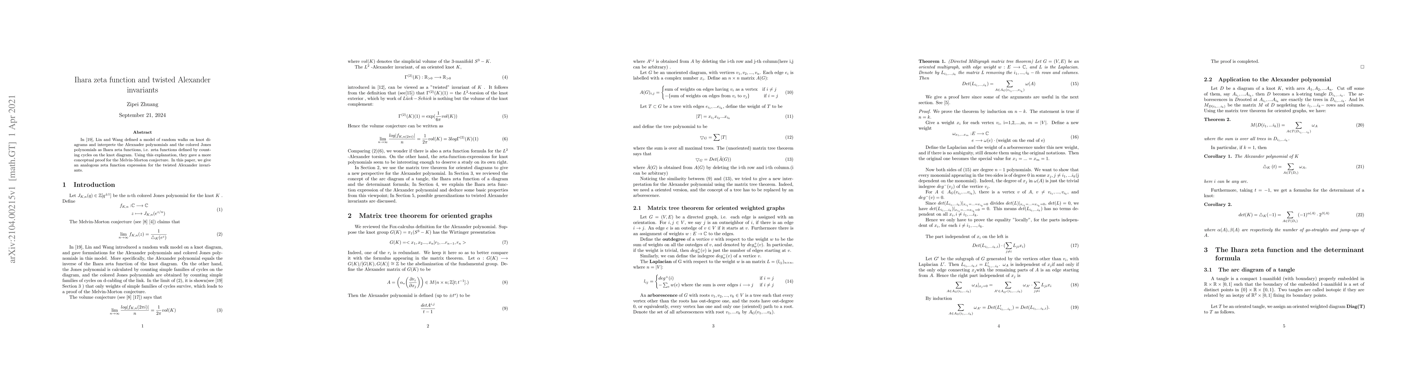 This paper extends Lin and Wang's model of random walks on knot diagrams to express twisted Alexander invariants as Ihara zeta functions, providing a new proof for the Melvin-Morton conjecture and broadening the understanding of knot theory through zeta function interpretations.