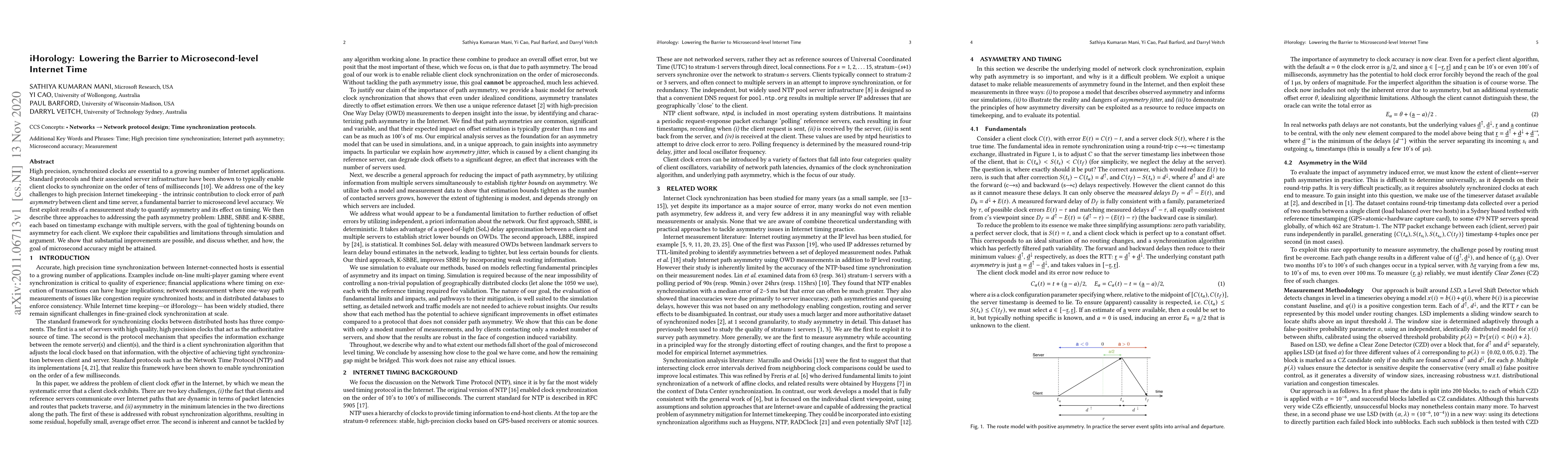 Researchers developed new methods to address path asymmetry in internet timekeeping, aiming to achieve microsecond-level accuracy, with substantial improvements possible through timestamp exchange with multiple servers.