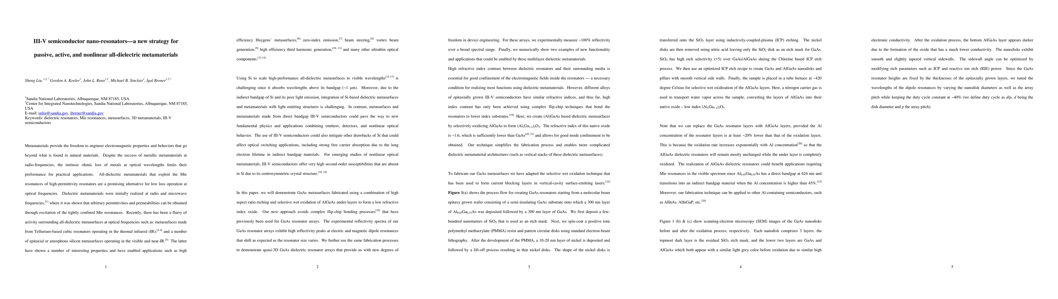 This paper explores the development of all-dielectric metamaterials using III-V semiconductor nano-resonators, specifically GaAs, to leverage their high second-order optical susceptibilities and integration capabilities. The study demonstrates multilayer arrays achieving ~100% reflectivity over a broad spectral range, suggesting potential for advanced passive, active, and nonlinear optical devices.