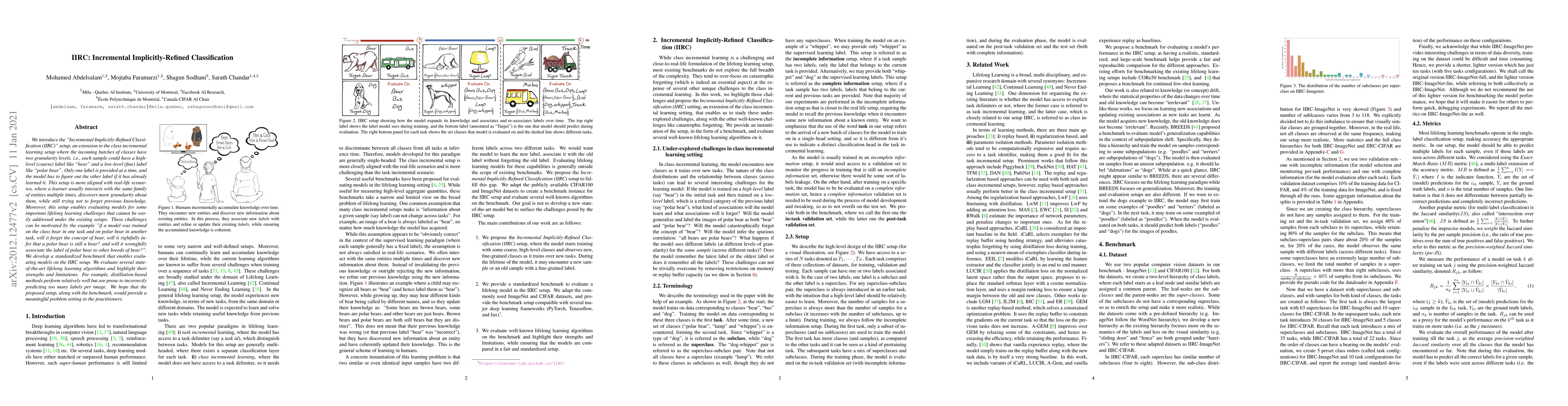 The paper introduces the Incremental Implicitly-Refined Classification (IIRC) setup, which extends class incremental learning to handle batches of classes with two granularity levels. This setup evaluates models' ability to infer missing labels and avoid forgetting previous knowledge, addressing important lifelong learning challenges. The authors develop a benchmark and analyze various lifelong learning algorithms, highlighting their strengths and limitations.