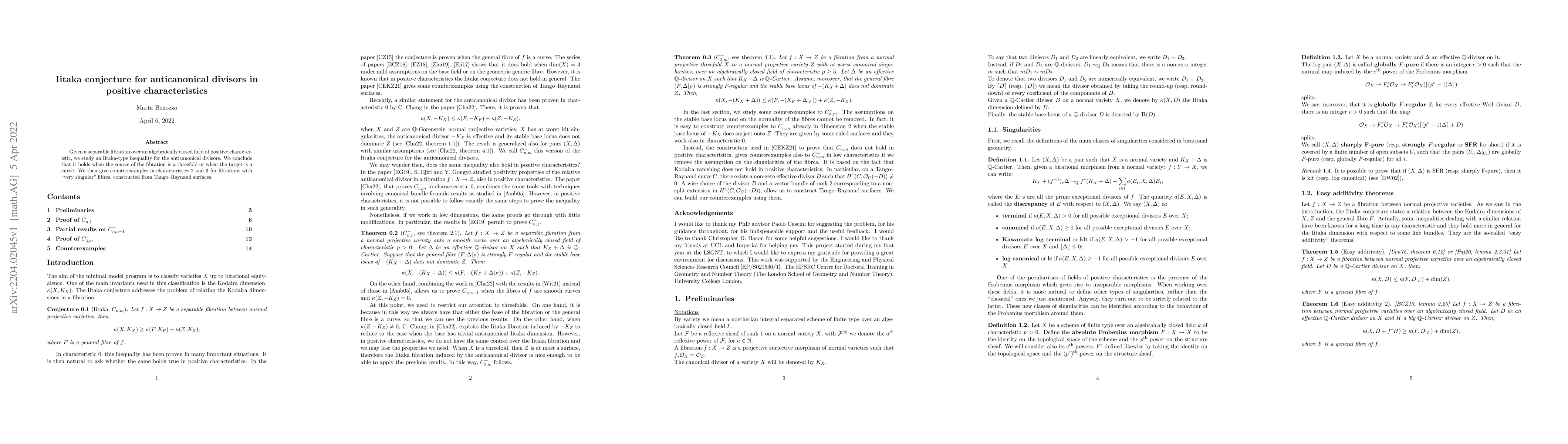 Given a separable fibration over an algebraically closed field of positive characteristic, we study an Iitaka-type inequality for the anticanonical divisors. We conclude that it holds when the source of the fibration is a threefold or when the target is a curve. We then give counterexamples in characteristics $2$ and $3$ for fibrations with "very singular" fibres, constructed from Tango-Raynaud surfaces.