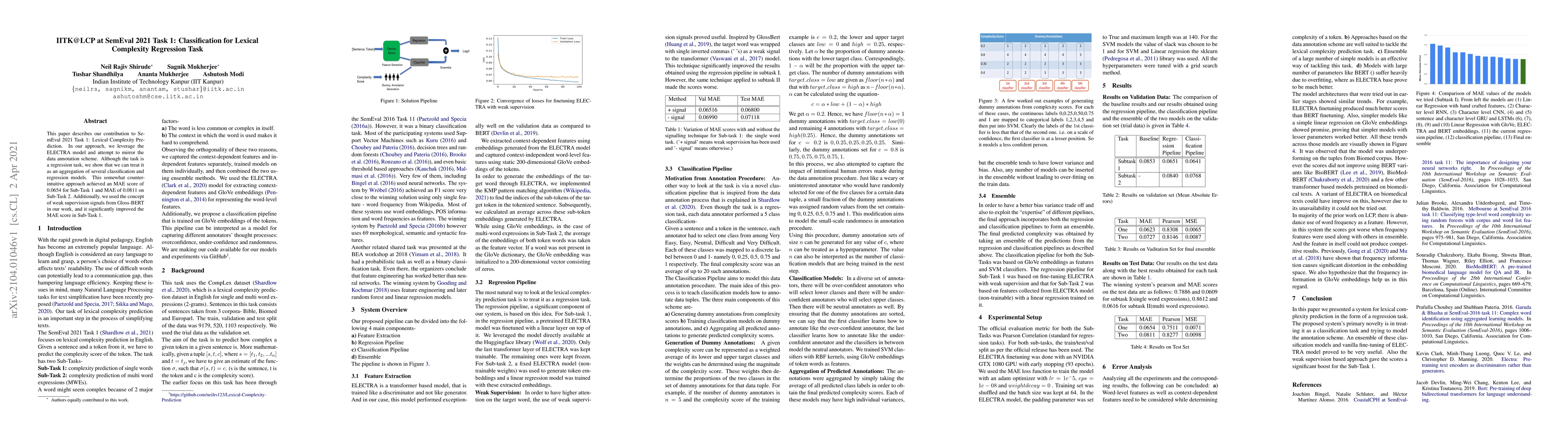 This paper describes our contribution to SemEval 2021 Task 1: Lexical Complexity Prediction. In our approach, we leverage the ELECTRA model and attempt to mirror the data annotation scheme. Although the task is a regression task, we show that we can treat it as an aggregation of several classification and regression models. This somewhat counter-intuitive approach achieved an MAE score of 0.0654 for Sub-Task 1 and MAE of 0.0811 on Sub-Task 2. Additionally, we used the concept of weak supervision signals from Gloss-BERT in our work, and it significantly improved the MAE score in Sub-Task 1.