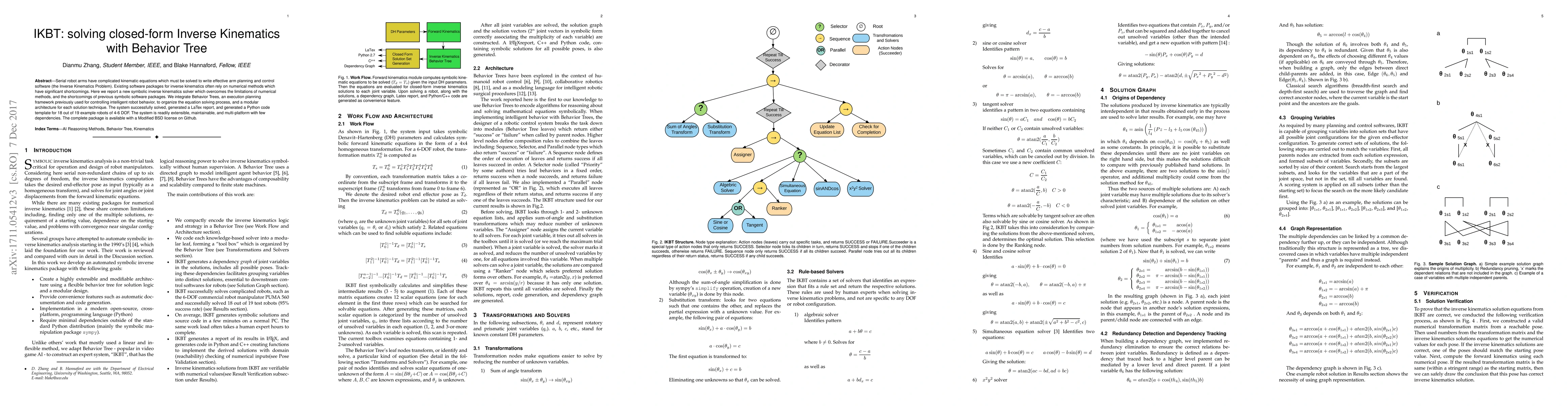 This paper presents IKBT, a novel symbolic inverse kinematics solver for serial robot arms that overcomes the limitations of numerical methods. It integrates Behavior Trees to organize the equation solving process, resulting in a modular, extensible, and maintainable system that successfully solved inverse kinematics for 18 out of 19 example robots.