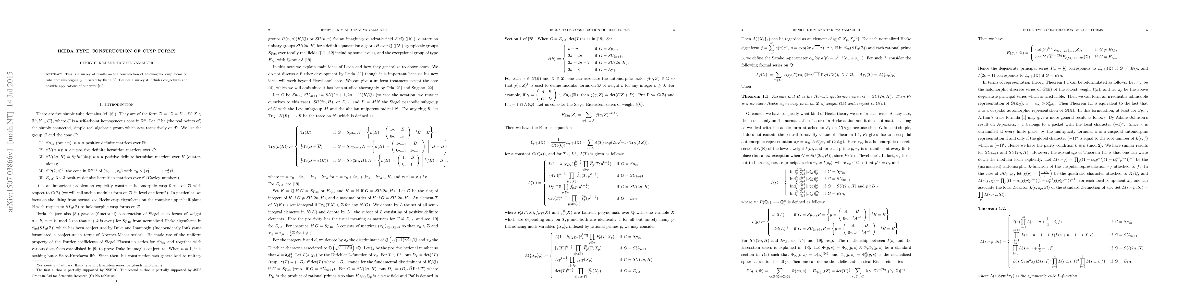 This paper surveys Ikeda's methods for constructing holomorphic cusp forms on tube domains, highlighting their origins and implications, while also presenting conjectures and potential applications arising from the research.