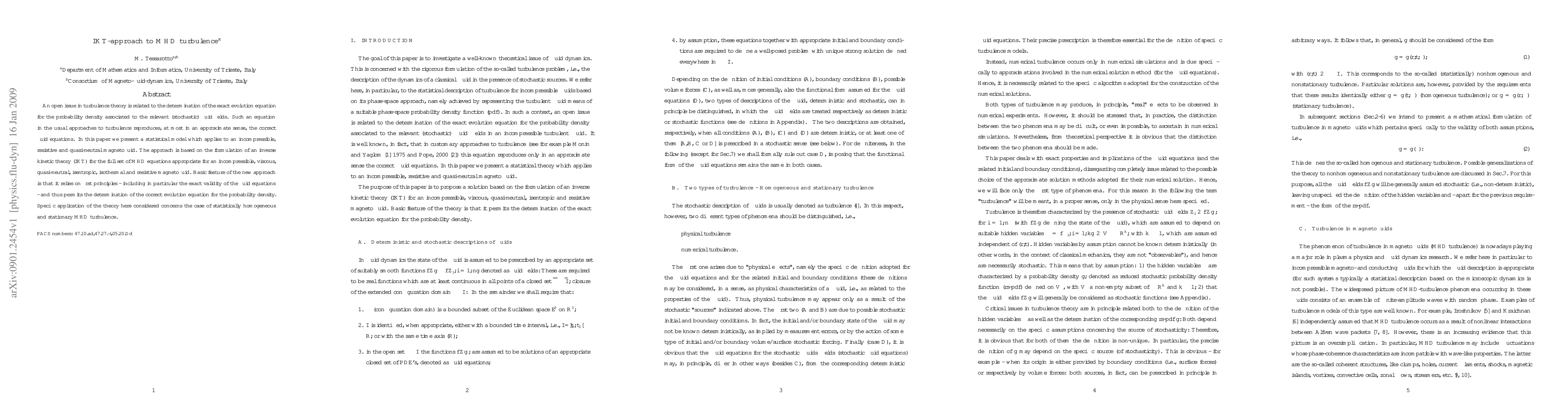 An open issue in turbulence theory is related to the determination of the exact evolution equation for the probability density associated to the relevant (stochastic) fluid fields. Such an equation in the usual approaches to turbulence reproduces, at most in an approximate sense, the correct fluid equations. In this paper we present a statistical model which applies to an incompressible, resistive and quasi-neutral magnetofluid. The approach is based on the formulation of an inverse kinetic theory (IKT) for the full set of MHD equations appropriate for an incompressible, viscous, quasi-neutral, isentropic, isothermal and resistive magnetofluid. Basic feature of the new approach is that it relies on first principles - including in particular the exact validity of the fluid equations - and thus permits the determination of the correct evolution equation for the probability density. Specific application of the theory here considered concerns the case of statistically homogeneous and stationary MHD turbulence.