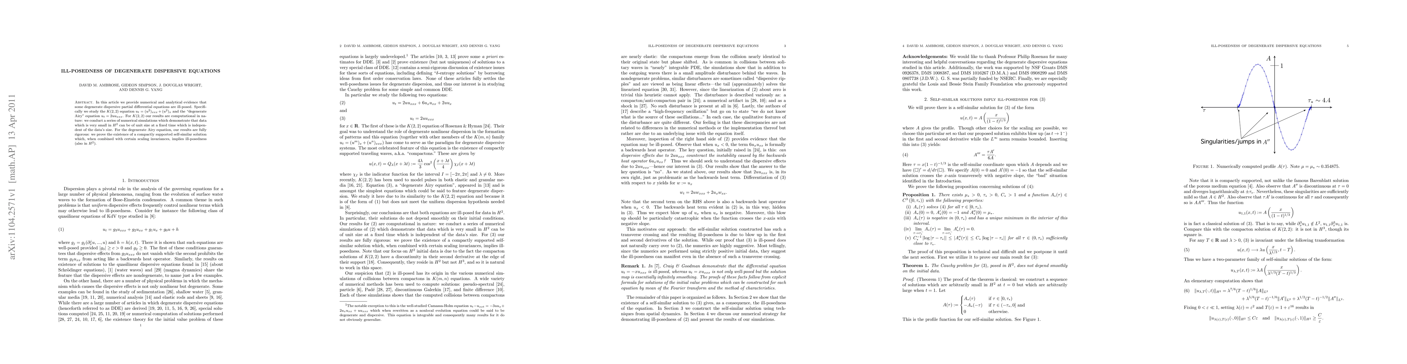 In this article we provide numerical and analytical evidence that some degenerate dispersive partial differential equations are ill-posed. Specifically we study the K(2,2) equation $u_t = (u^2)_{xxx} + (u^2)_{x}$ and the "degenerate Airy" equation $u_t = 2 u u_{xxx}$. For K(2,2) our results are computational in nature: we conduct a series of numerical simulations which demonstrate that data which is very small in $H^2$ can be of unit size at a fixed time which is independent of the data's size. For the degenerate Airy equation, our results are fully rigorous: we prove the existence of a compactly supported self-similar solution which, when combined with certain scaling invariances, implies ill-posedness (also in $H^2$).