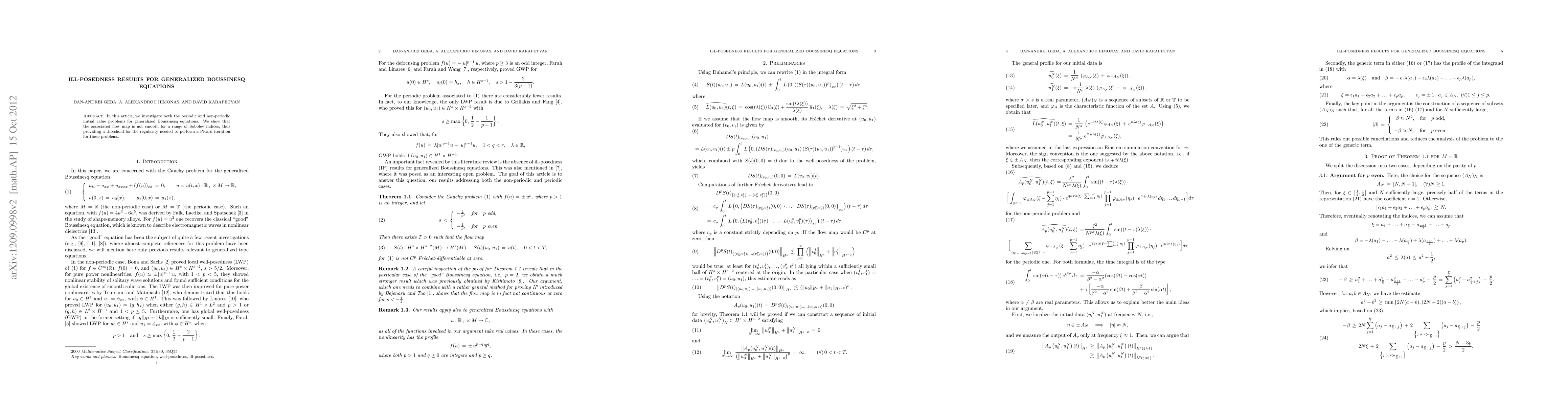 This paper demonstrates ill-posedness results for generalized Boussinesq equations, showing that the flow map is not smooth for certain Sobolev indices, establishing a regularity threshold for Picard iteration.