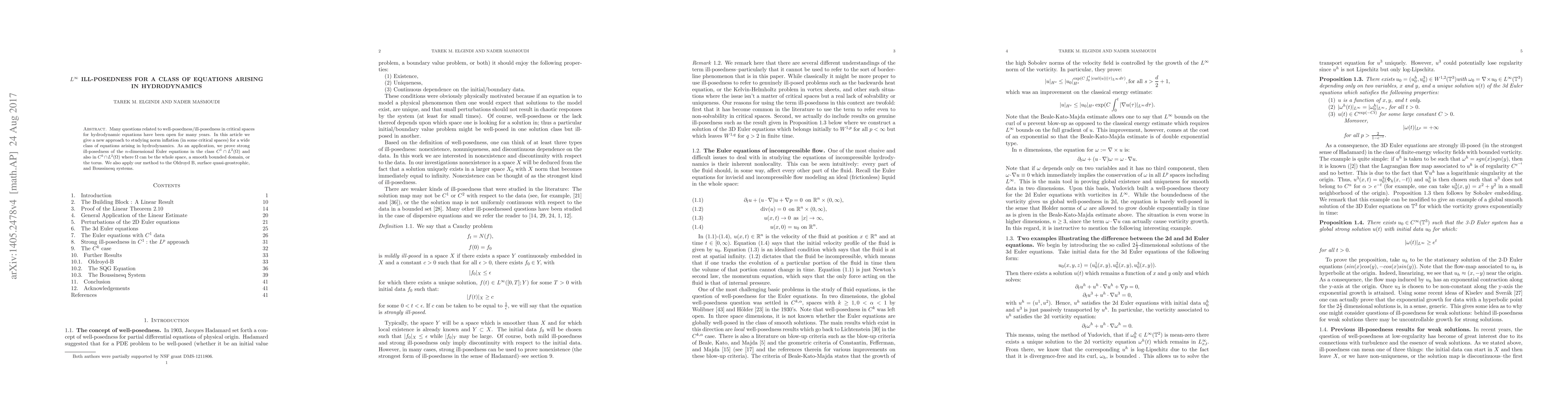 Many questions related to well-posedness/ill-posedness in critical spaces for hydrodynamic equations have been open for many years. In this article we give a new approach to studying norm inflation (in some critical spaces) for a wide class of equations arising in hydrodynamics. As an application, we prove strong ill-posedness of the $n$-dimensional Euler equations in the class $C^1\cap L^2 (\Omega)$ and also in $C^k \cap L^2(\Omega)$ where $\Omega$ can be the whole space, a smooth bounded domain, or the torus. We also apply our method to the Oldroyd B, surface quasi-geostrophic, and Boussinesq systems.