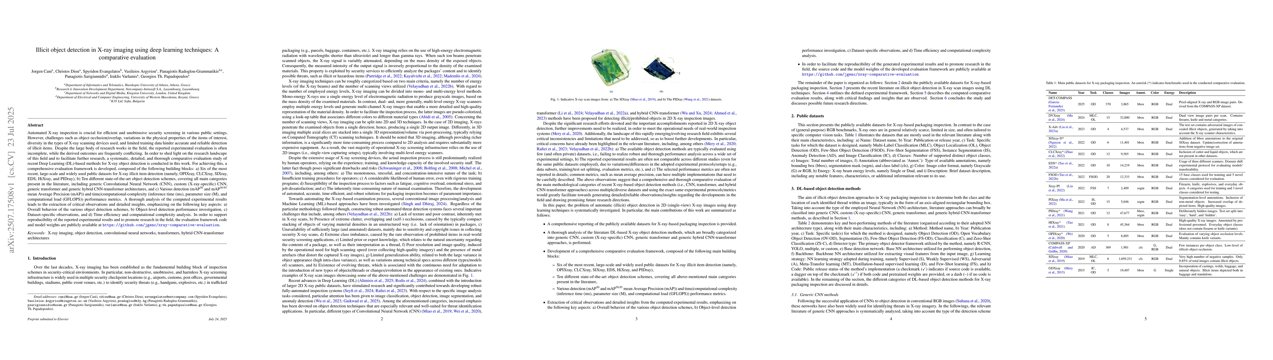Automated X-ray inspection is crucial for efficient and unobtrusive security screening in various public settings. However, challenges such as object occlusion, variations in the physical properties of items, diversity in X-ray scanning devices, and limited training data hinder accurate and reliable detection of illicit items. Despite the large body of research in the field, reported experimental evaluations are often incomplete, with frequently conflicting outcomes. To shed light on the research landscape and facilitate further research, a systematic, detailed, and thorough comparative evaluation of recent Deep Learning (DL)-based methods for X-ray object detection is conducted. For this, a comprehensive evaluation framework is developed, composed of: a) Six recent, large-scale, and widely used public datasets for X-ray illicit item detection (OPIXray, CLCXray, SIXray, EDS, HiXray, and PIDray), b) Ten different state-of-the-art object detection schemes covering all main categories in the literature, including generic Convolutional Neural Network (CNN), custom CNN, generic transformer, and hybrid CNN-transformer architectures, and c) Various detection (mAP50 and mAP50:95) and time/computational-complexity (inference time (ms), parameter size (M), and computational load (GFLOPS)) metrics. A thorough analysis of the results leads to critical observations and insights, emphasizing key aspects such as: a) Overall behavior of the object detection schemes, b) Object-level detection performance, c) Dataset-specific observations, and d) Time efficiency and computational complexity analysis. To support reproducibility of the reported experimental results, the evaluation code and model weights are made publicly available at https://github.com/jgenc/xray-comparative-evaluation.
