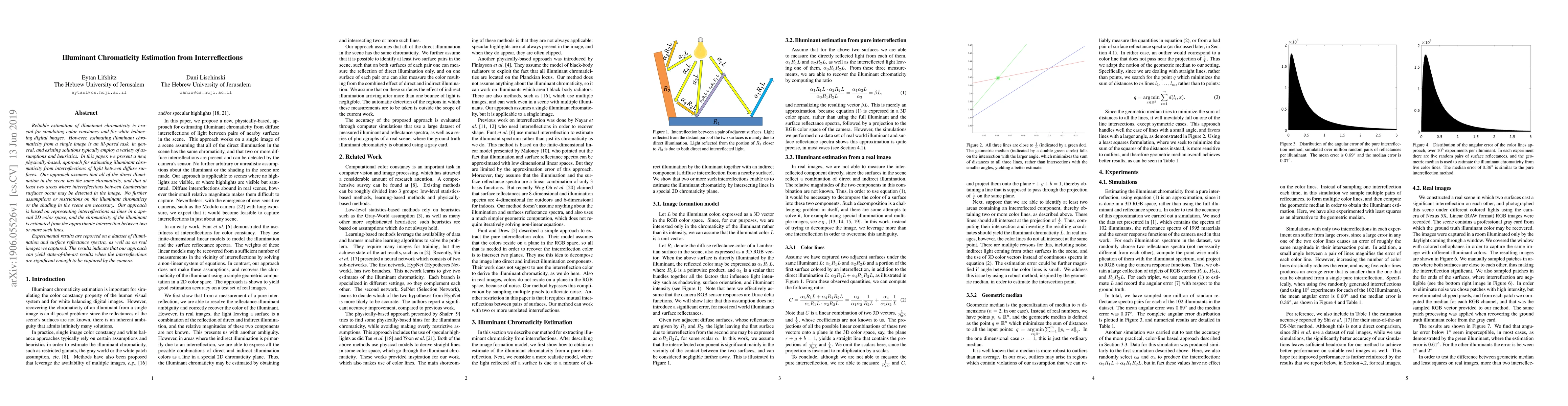 This paper proposes a physically-based method for estimating illuminant chromaticity using interreflections between diffuse surfaces, assuming uniform direct illumination and detectable interreflection areas. The method estimates illuminant chromaticity from the intersection of lines representing interreflections in a 2D color space, achieving state-of-the-art results when interreflections are significant.