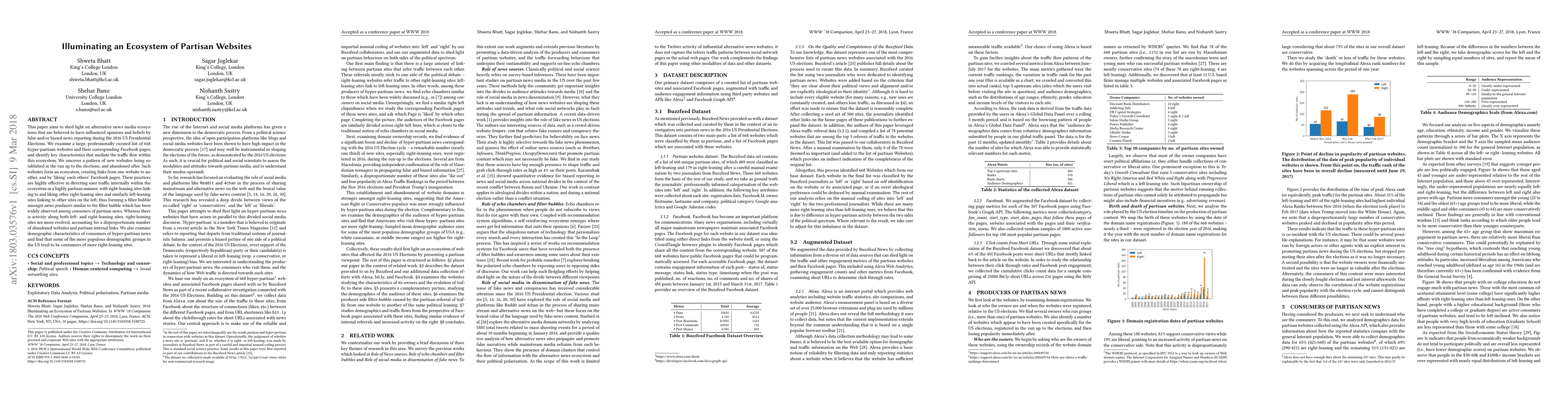 This paper investigates the ecosystem of hyper-partisan websites influencing opinions during the 2016 US Presidential Elections, revealing a network of right-leaning sites that dominate traffic flow and link structures, while also noting a surge in new sites established before and abandoned after the elections. Demographic analysis shows a correlation between certain populous US groups and consumption of right-leaning news.