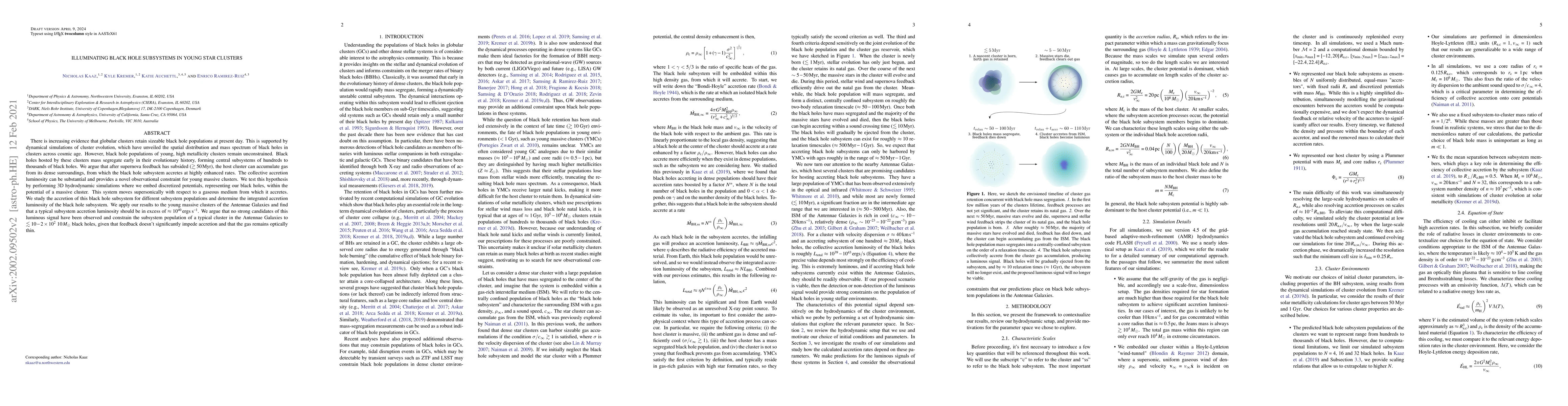There is increasing evidence that globular clusters retain sizeable black hole populations at present day. This is supported by dynamical simulations of cluster evolution, which have unveiled the spatial distribution and mass spectrum of black holes in clusters across cosmic age. However, black hole populations of young, high metallicity clusters remain unconstrained. Black holes hosted by these clusters mass segregate early in their evolutionary history, forming central subsystems of hundreds to thousands of black holes. We argue that after supernova feedback has subsided ($\gtrsim 50\,{\rm Myr}$), the host cluster can accumulate gas from its dense surroundings, from which the black hole subsystem accretes at highly enhanced rates. The collective accretion luminosity can be substantial and provides a novel observational constraint for young massive clusters. We test this hypothesis by performing 3D hydrodynamic simulations where we embed discretized potentials, representing our black holes, within the potential of a massive cluster. This system moves supersonically with respect to a gaseous medium from which it accretes. We study the accretion of this black hole subsystem for different subsystem populations and determine the integrated accretion luminosity of the black hole subsystem. We apply our results to the young massive clusters of the Antennae Galaxies and find that a typical subsystem accretion luminosity should be in excess of $\approx 10^{40}\,{\rm ergs\,\,s^{-1}}$. We argue that no strong candidates of this luminous signal have been observed and constrain the subsystem population of a typical cluster in the Antennae Galaxies to $\lesssim10-2\times10^2$ $10\,M_\odot$ black holes, given that feedback doesn't significantly impede accretion and that the gas remains optically thin.