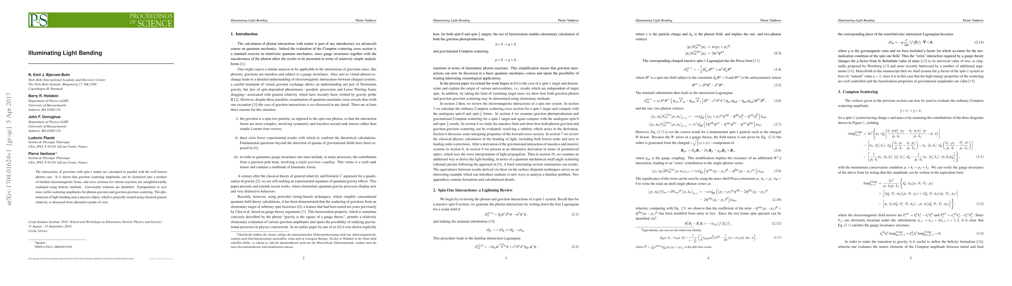 This research calculates graviton interactions with matter parallel to photons, showing graviton scattering amplitudes factorize into known electromagnetic forms. It identifies universality relations and extrapolates to zero mass for photon-graviton and graviton-graviton scattering, discussing light bending near massive objects from alternative perspectives.