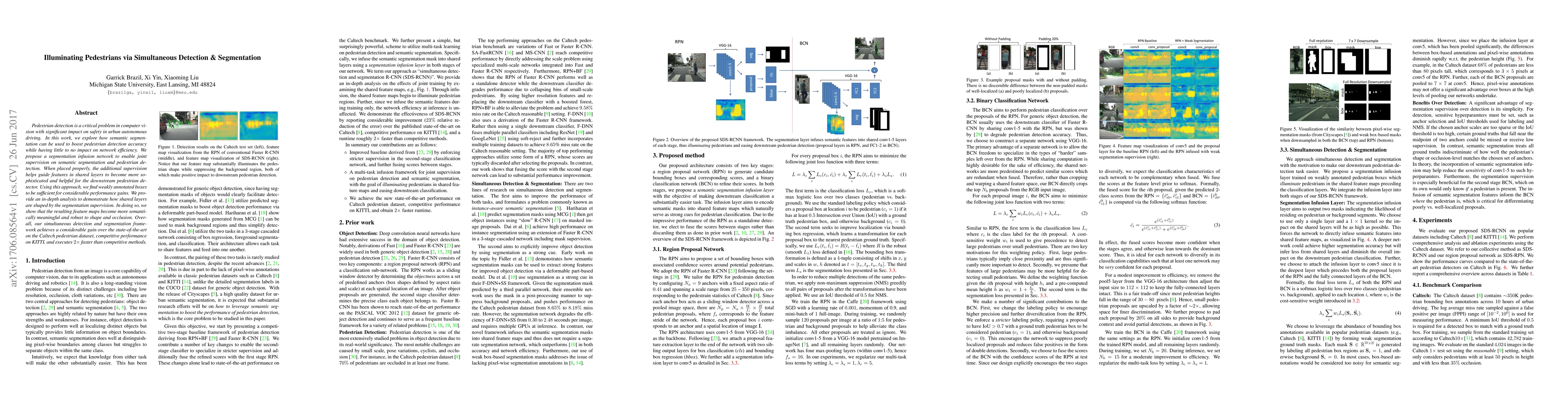 Pedestrian detection is a critical problem in computer vision with significant impact on safety in urban autonomous driving. In this work, we explore how semantic segmentation can be used to boost pedestrian detection accuracy while having little to no impact on network efficiency. We propose a segmentation infusion network to enable joint supervision on semantic segmentation and pedestrian detection. When placed properly, the additional supervision helps guide features in shared layers to become more sophisticated and helpful for the downstream pedestrian detector. Using this approach, we find weakly annotated boxes to be sufficient for considerable performance gains. We provide an in-depth analysis to demonstrate how shared layers are shaped by the segmentation supervision. In doing so, we show that the resulting feature maps become more semantically meaningful and robust to shape and occlusion. Overall, our simultaneous detection and segmentation framework achieves a considerable gain over the state-of-the-art on the Caltech pedestrian dataset, competitive performance on KITTI, and executes 2x faster than competitive methods.