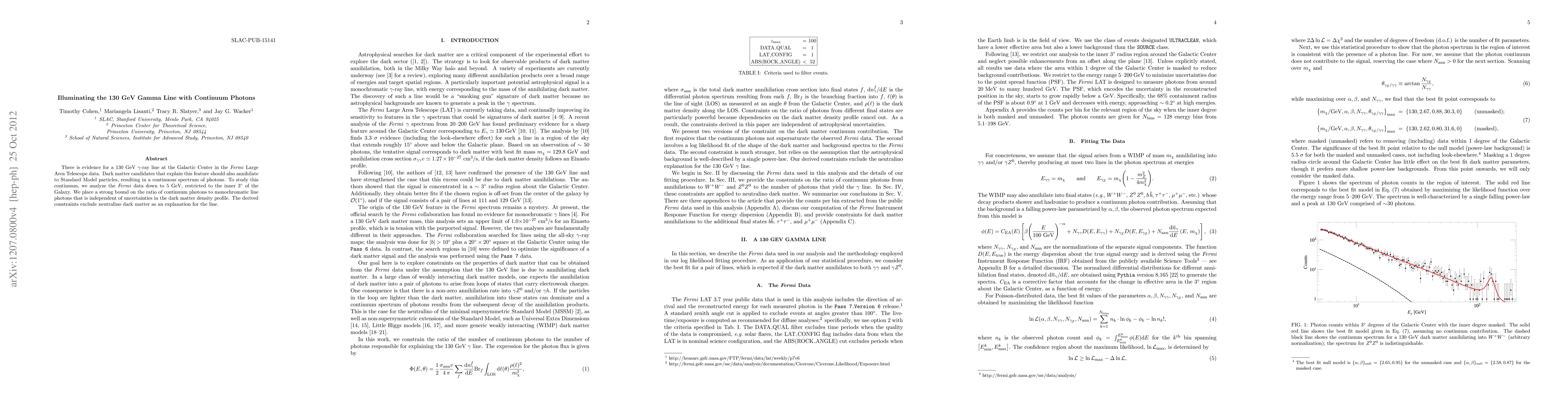 This paper analyzes Fermi Large Area Telescope data to investigate the 130 GeV gamma-ray line at the Galactic Center, finding that the continuum photon spectrum does not support neutralino dark matter as an explanation. The study places strong constraints on the ratio of continuum to line photons, independent of dark matter density uncertainties.