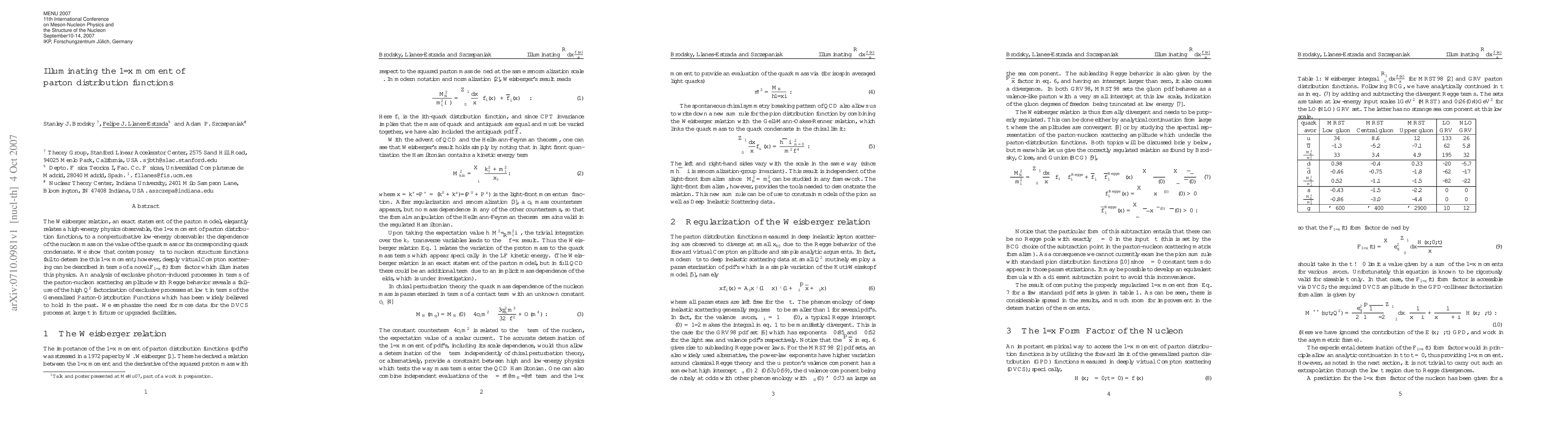 This paper explores the Weisberger relation linking high-energy observables to low-energy phenomena in parton distribution functions, revealing that current fits miss the 1/x moment. It proposes a new F_{1/x}(t) form factor for deeply virtual Compton scattering to address this gap, and highlights the need for more data on DVCS at large t.