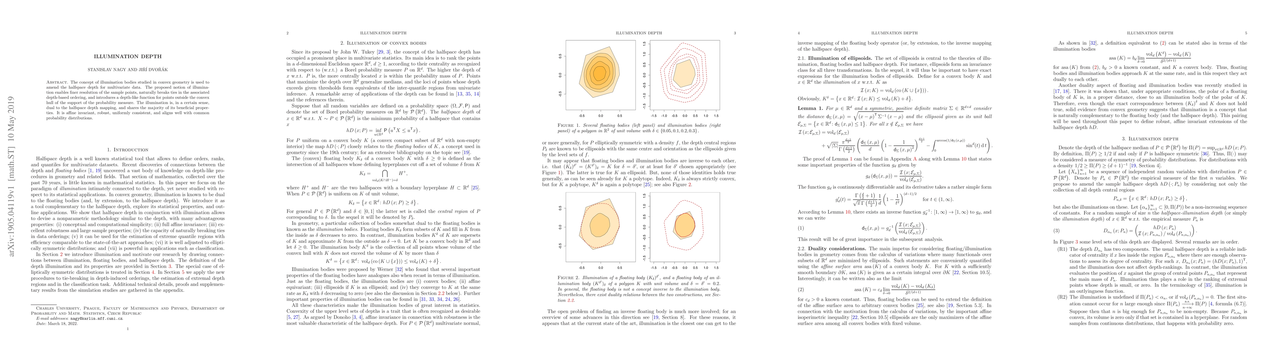 This paper proposes a new method called illumination depth that refines halfspace depth for multivariate data, offering finer resolution of sample points and breaking ties naturally. It is affine invariant, robust, uniformly consistent, and aligns well with common probability distributions.