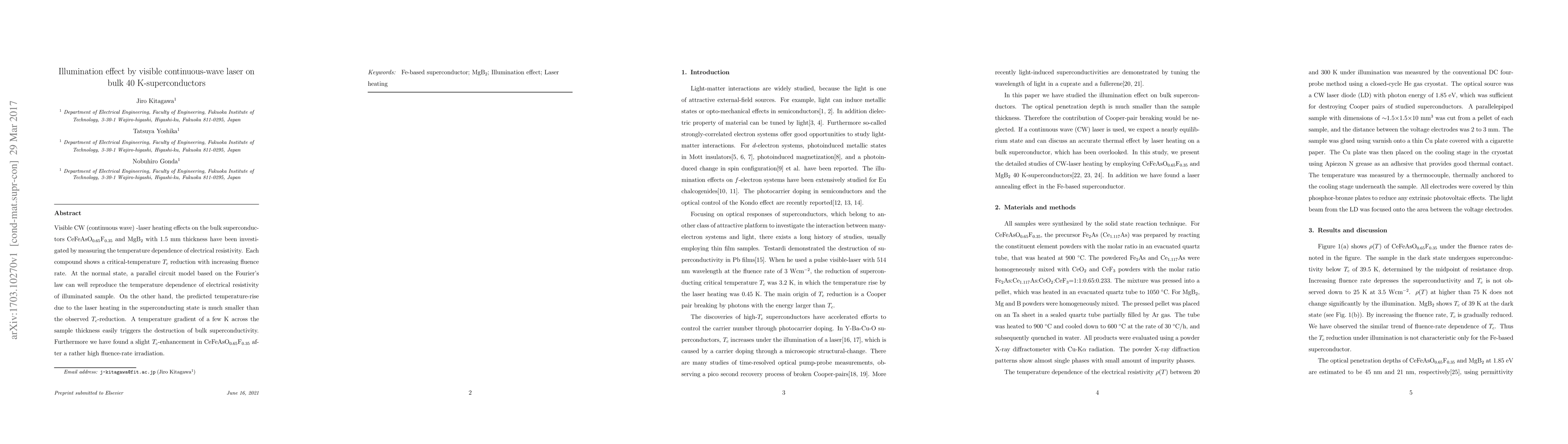 Researchers studied the effects of visible continuous-wave laser heating on bulk superconductors, finding that it reduces critical temperature and can destroy bulk superconductivity, but also triggers a slight Tc-enhancement in some cases.