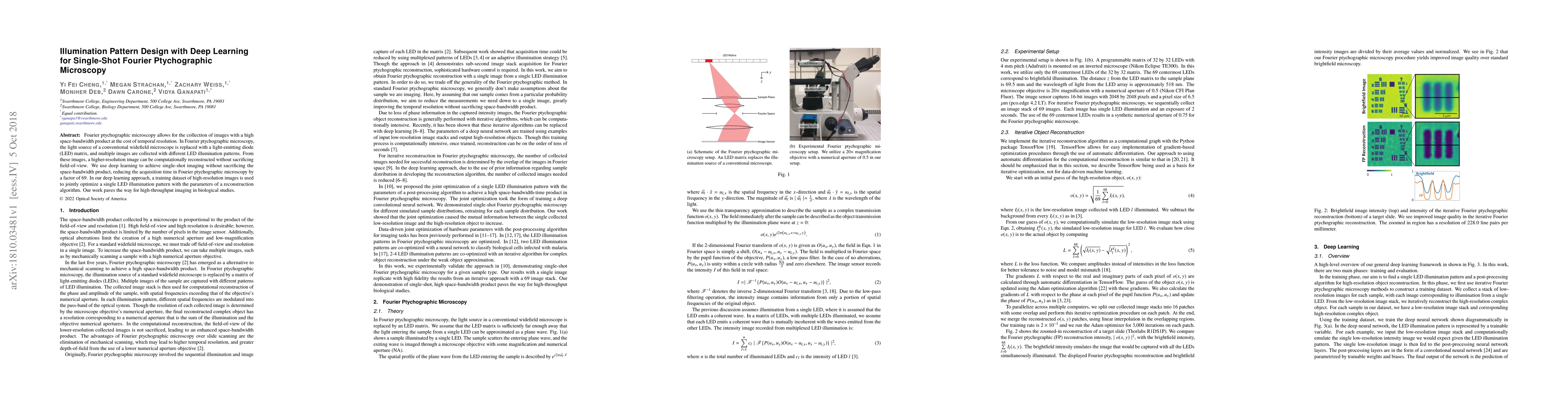 This paper proposes using deep learning to design an illumination pattern for single-shot Fourier ptychographic microscopy, significantly reducing acquisition time by 69 times while maintaining high resolution. The deep learning approach optimizes a single LED illumination pattern and reconstruction algorithm jointly, enhancing throughput for biological imaging.