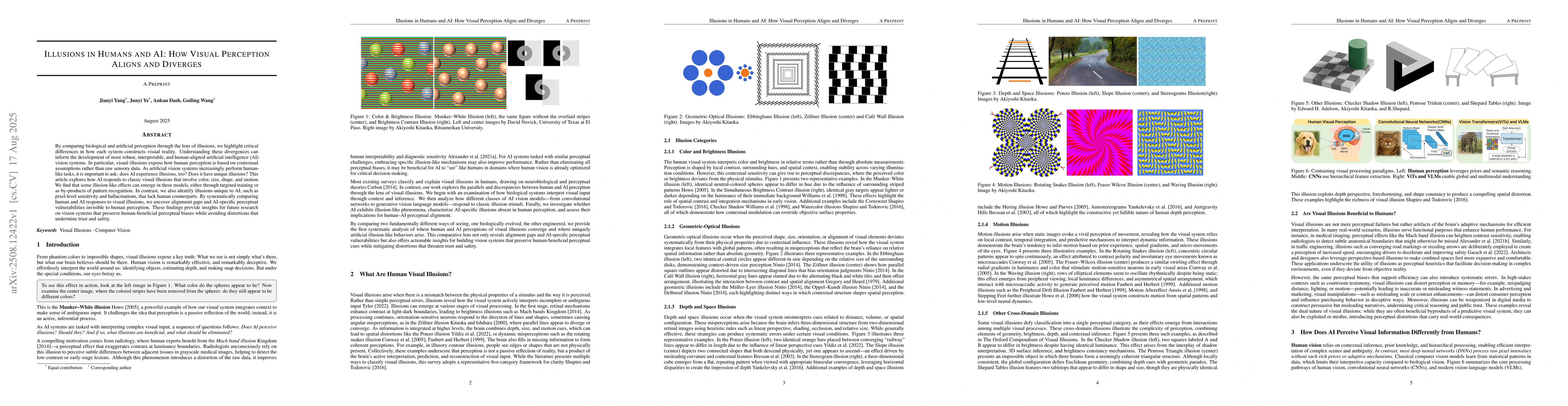 By comparing biological and artificial perception through the lens of illusions, we highlight critical differences in how each system constructs visual reality. Understanding these divergences can inform the development of more robust, interpretable, and human-aligned artificial intelligence (AI) vision systems. In particular, visual illusions expose how human perception is based on contextual assumptions rather than raw sensory data. As artificial vision systems increasingly perform human-like tasks, it is important to ask: does AI experience illusions, too? Does it have unique illusions? This article explores how AI responds to classic visual illusions that involve color, size, shape, and motion. We find that some illusion-like effects can emerge in these models, either through targeted training or as by-products of pattern recognition. In contrast, we also identify illusions unique to AI, such as pixel-level sensitivity and hallucinations, that lack human counterparts. By systematically comparing human and AI responses to visual illusions, we uncover alignment gaps and AI-specific perceptual vulnerabilities invisible to human perception. These findings provide insights for future research on vision systems that preserve human-beneficial perceptual biases while avoiding distortions that undermine trust and safety.