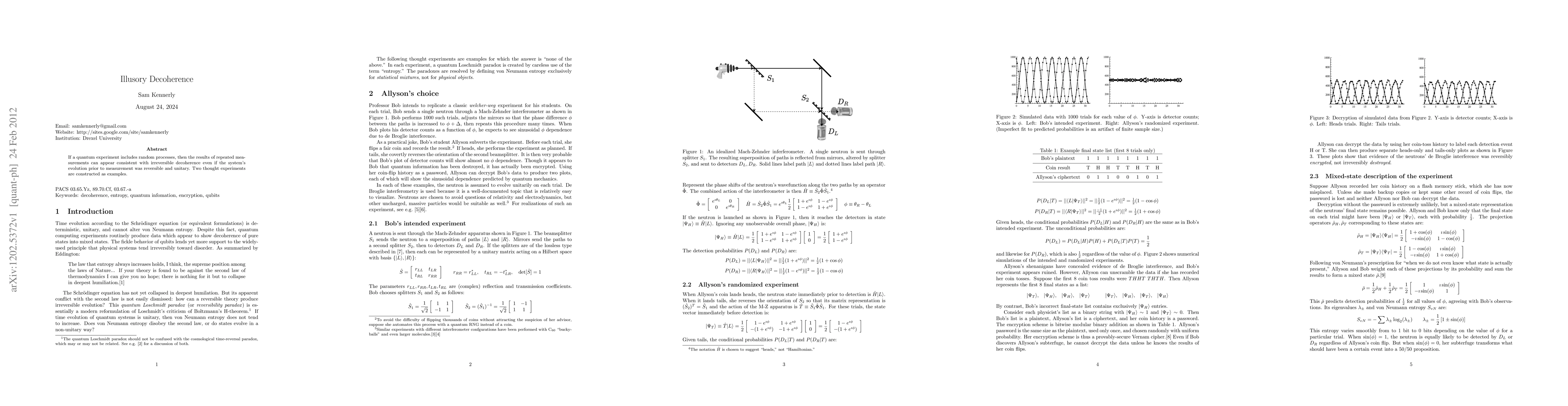 If a quantum experiment includes random processes, then the results of repeated measurements can appear consistent with irreversible decoherence even if the system's evolution prior to measurement was reversible and unitary. Two thought experiments are constructed as examples.