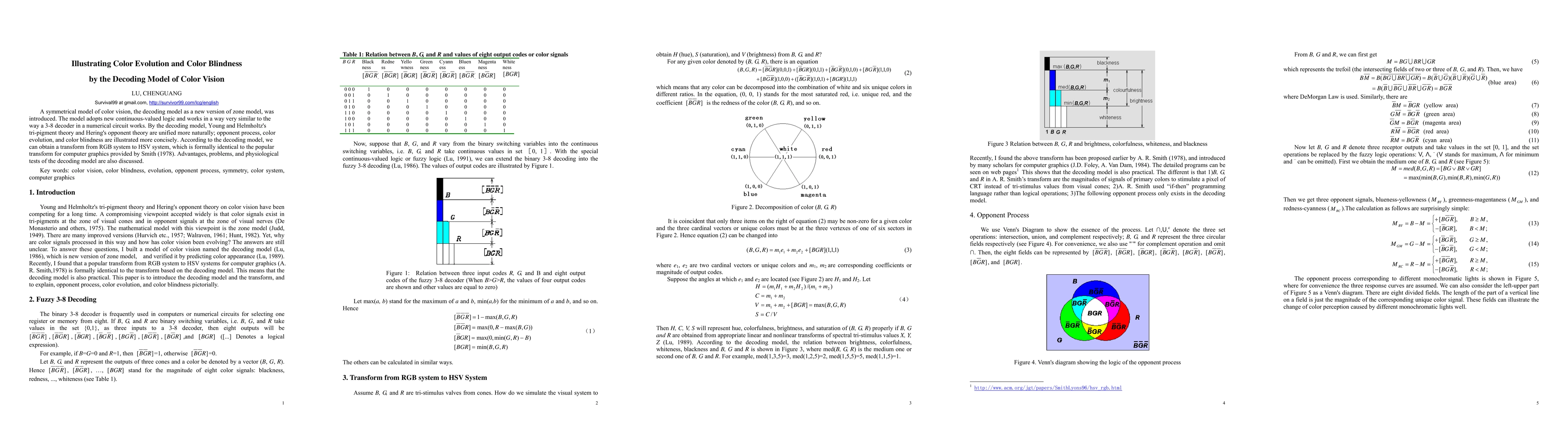 This paper introduces a decoding model of color vision that unifies Young and Helmholtz's tri-pigment theory with Hering's opponent theory, illustrating color evolution and color blindness concisely. The model also provides a transform from RGB to HSV systems, similar to Smith's (1978) transform, and discusses its advantages and physiological tests.