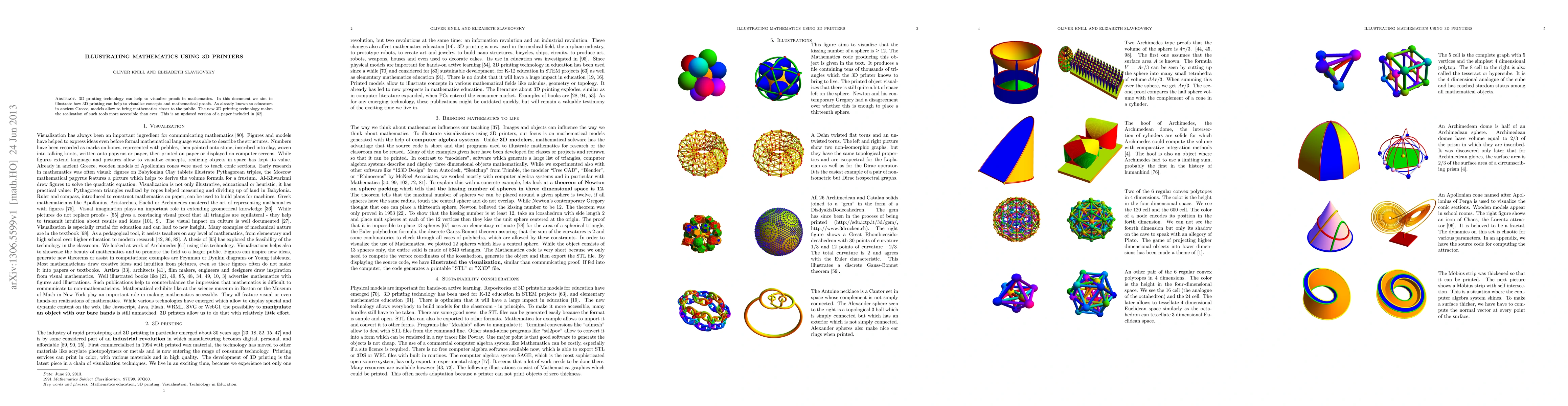 This paper explores how 3D printing technology can enhance the visualization of mathematical concepts and proofs, making abstract ideas more tangible. It builds on ancient educational methods by providing modern, accessible tools for bringing mathematics closer to the public.