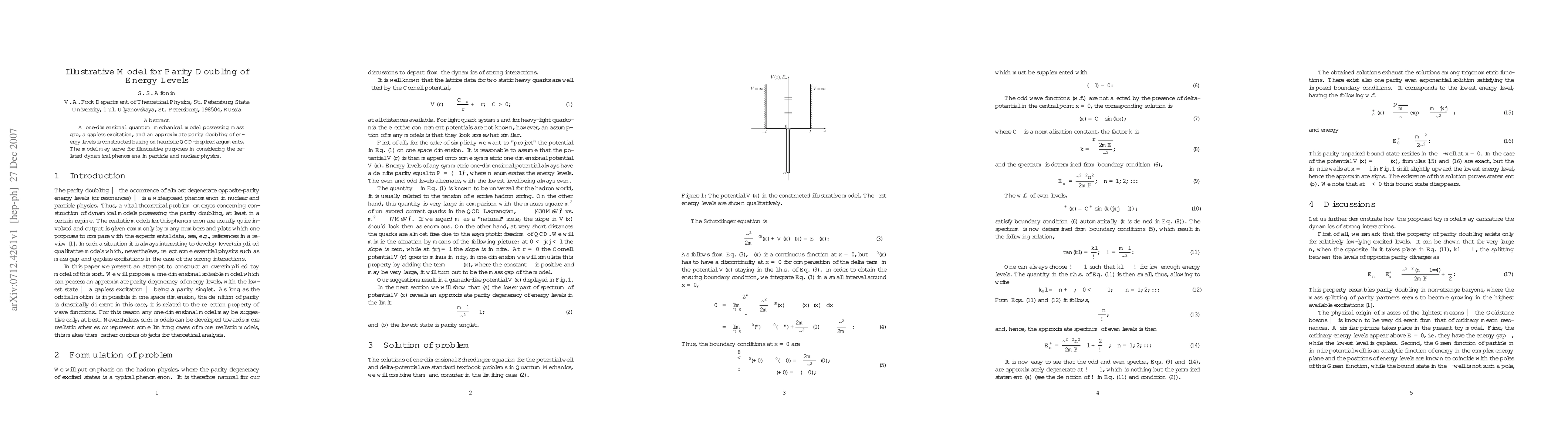 A one-dimensional quantum mechanical model possessing mass gap, a gapless excitation, and an approximate parity doubling of energy levels is constructed basing on heuristic QCD-inspired arguments. The model may serve for illustrative purposes in considering the related dynamical phenomena in particle and nuclear physics.