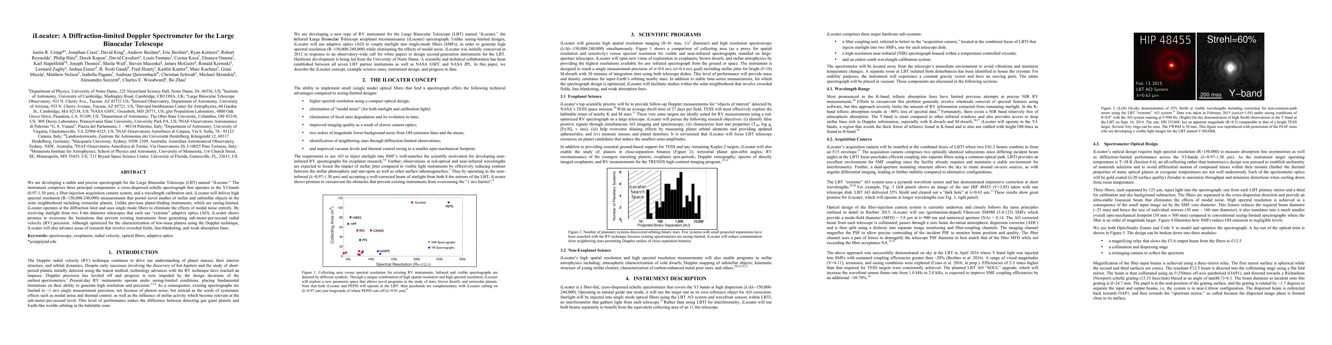iLocater is a diffraction-limited Doppler spectrometer for the Large Binocular Telescope, designed to achieve high spectral resolution for studying stellar and substellar objects, including extrasolar planets, with unprecedented radial velocity precision. Unlike seeing-limited instruments, it uses single mode fibers and extreme adaptive optics to eliminate modal noise and achieve precision below sub-meter-per-second.